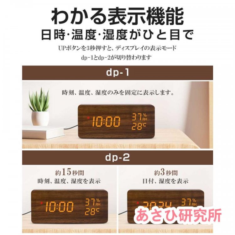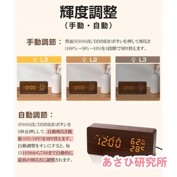 夜時間帯には明るさが自動的に暗くなり、目に優しい程度なので、夜中の時刻確認にピッタリ!