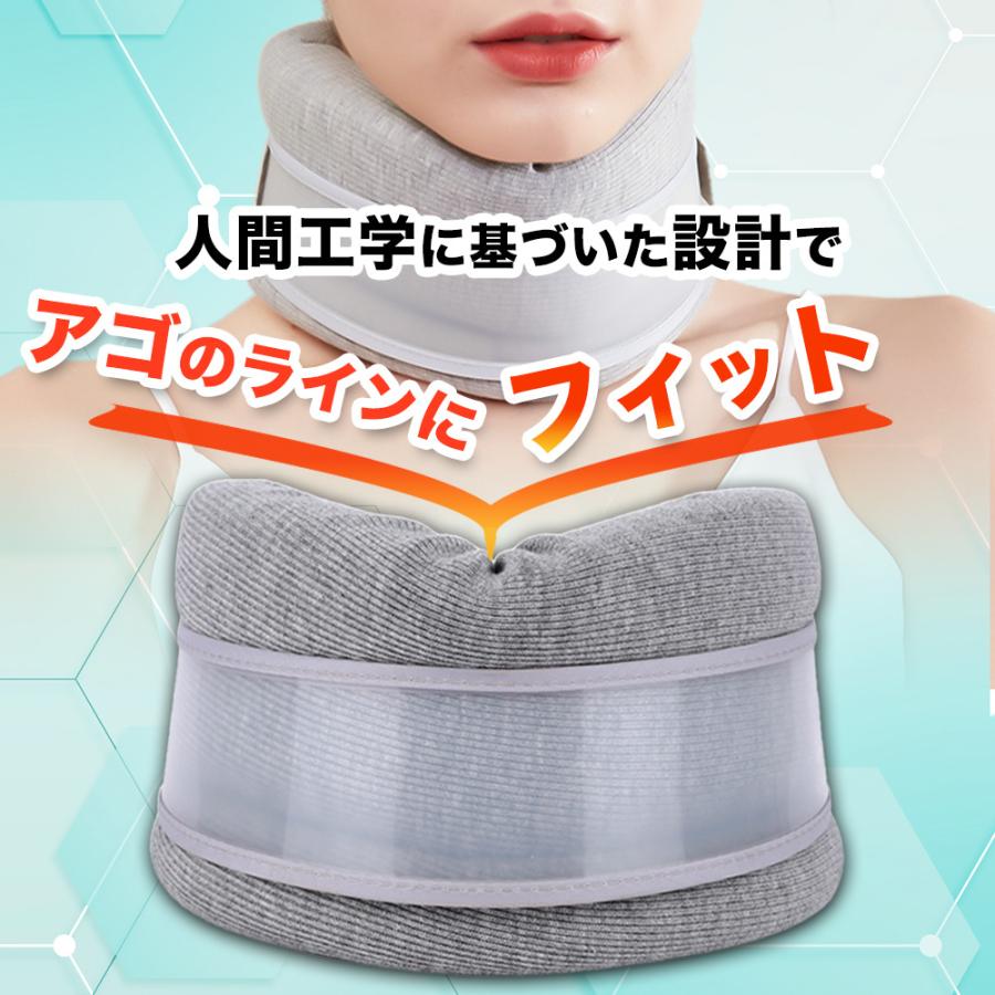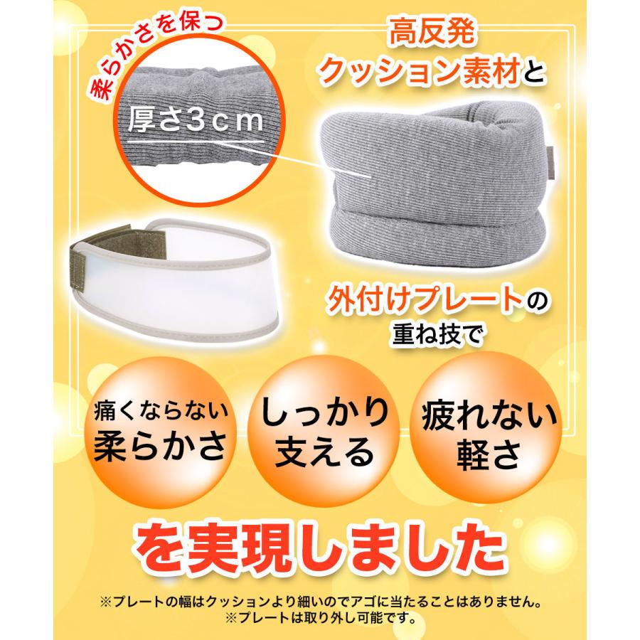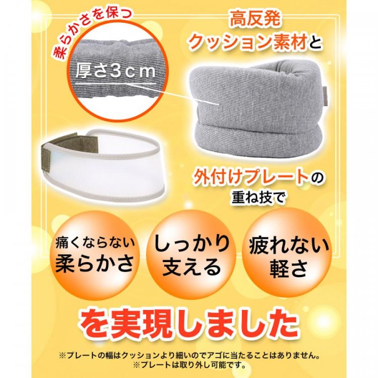 ?前方にあるくぼみに顎をのせ、マジックテープで留めるだけの簡単装着。