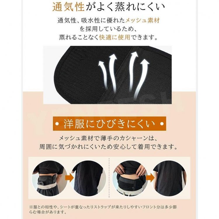 (3)蒸れにくいメッシュベルトは通気性グッド◎