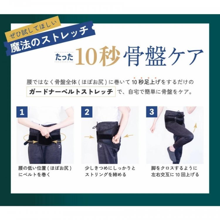 そこで、このベルトを使って骨盤ケアを続けていきましょう。