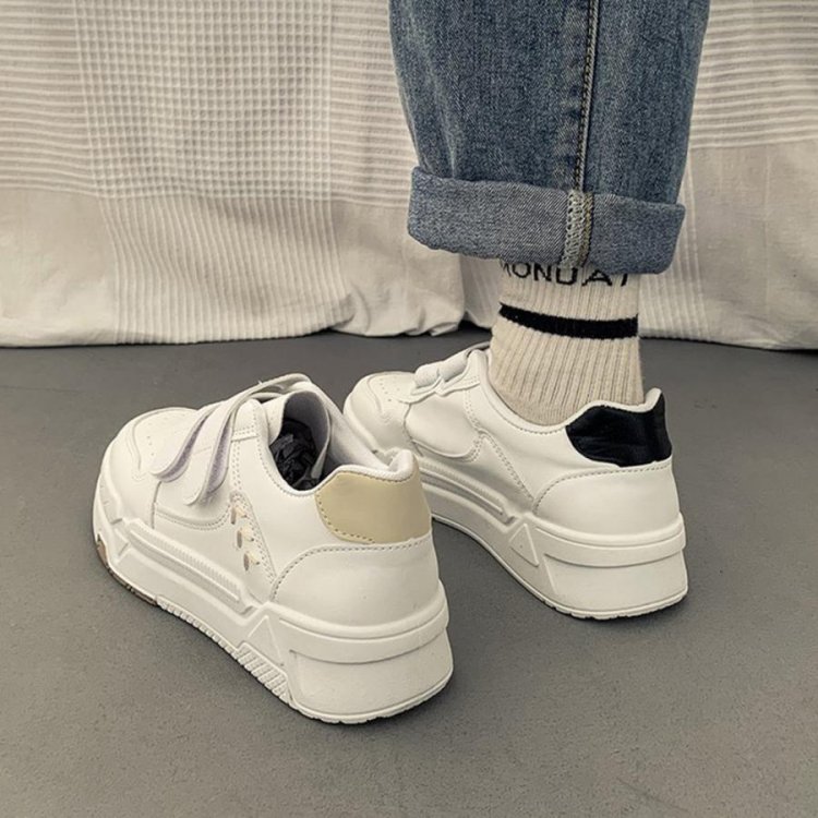 ローカット スニーカー マジックテープ 履きやすい カジュアル シューズ PUレザ ローヒール 靴 通勤通学 歩きやすい