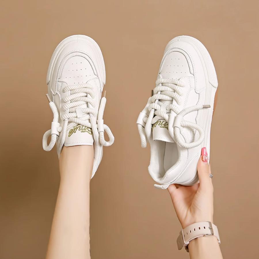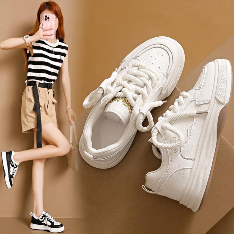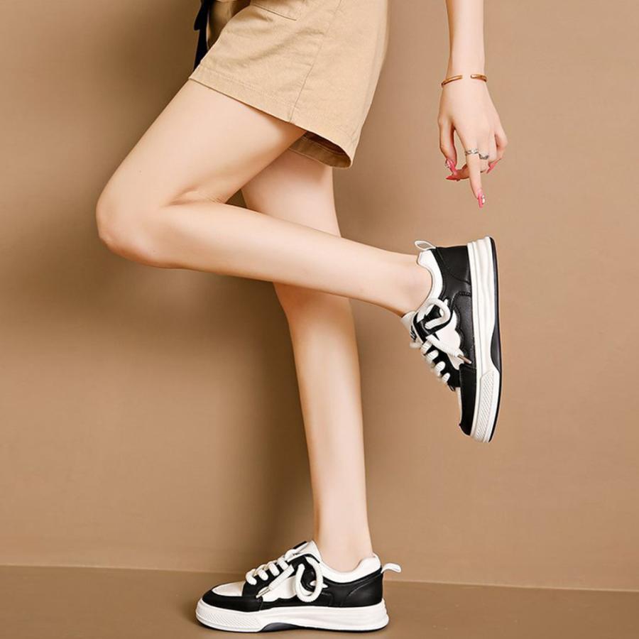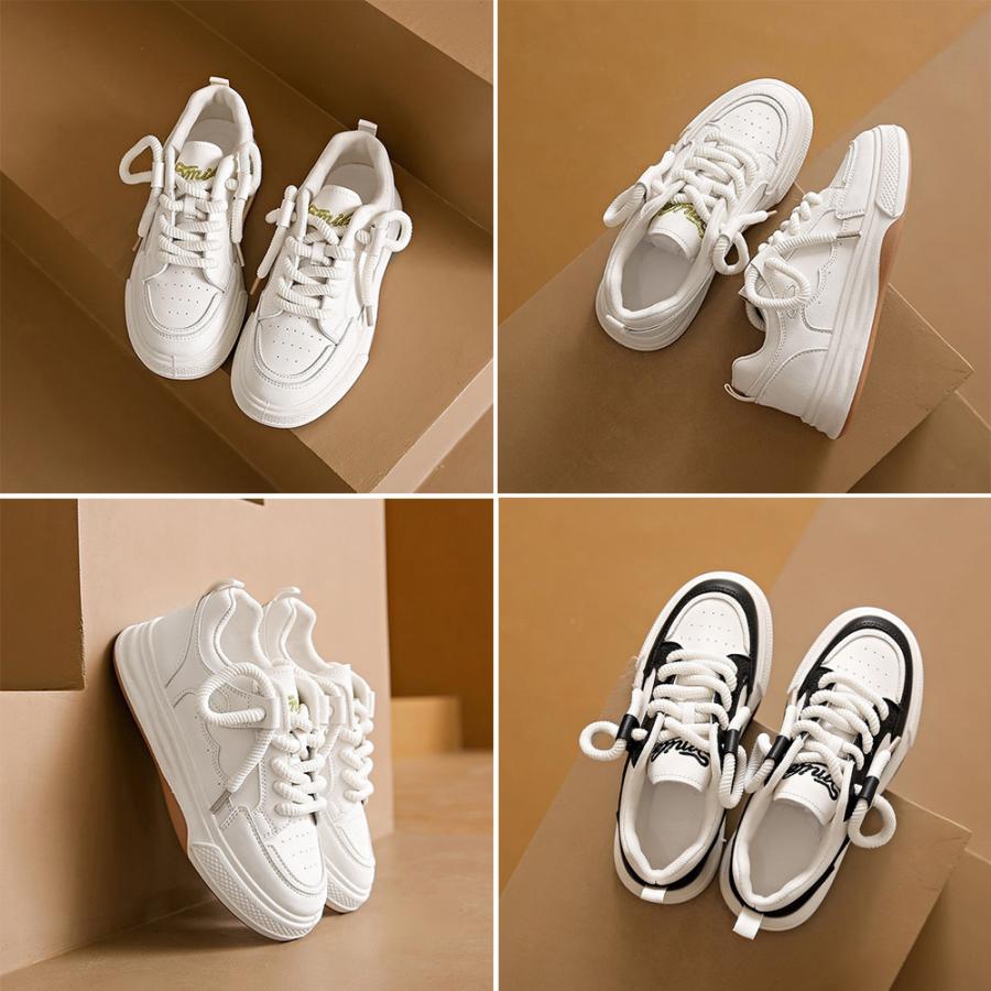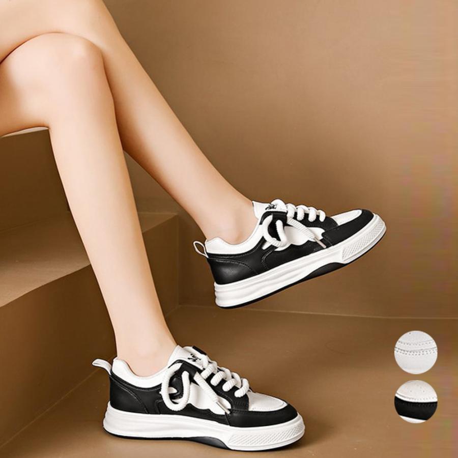 履きやすいシューズ 通勤通学 韓国ファッション おしゃれ 美脚スニーカー レースアップ カジュアルPUレザー 可愛い太紐