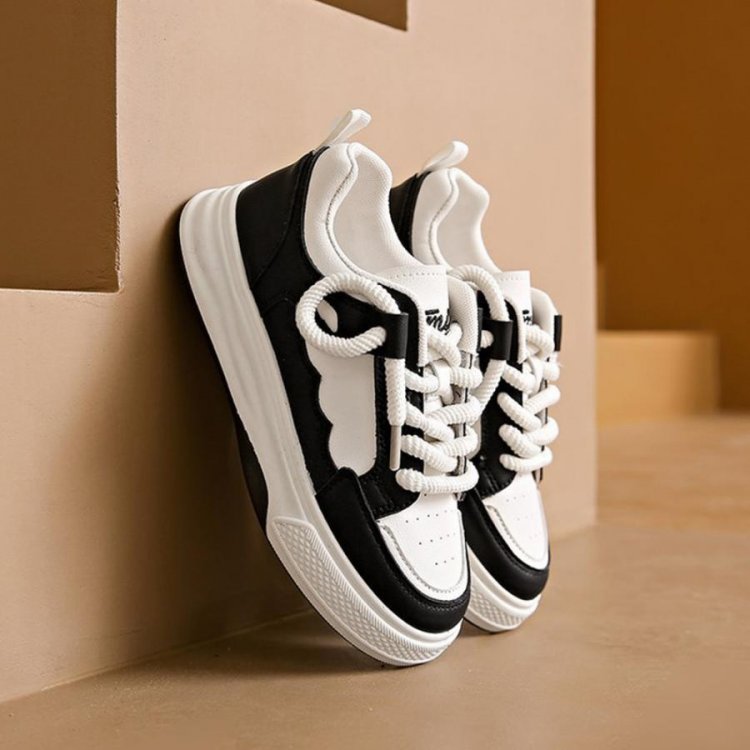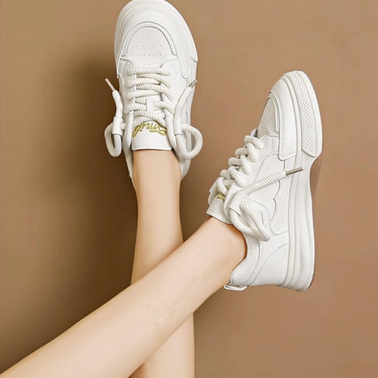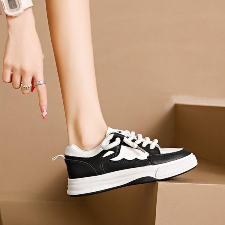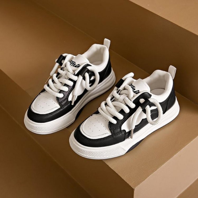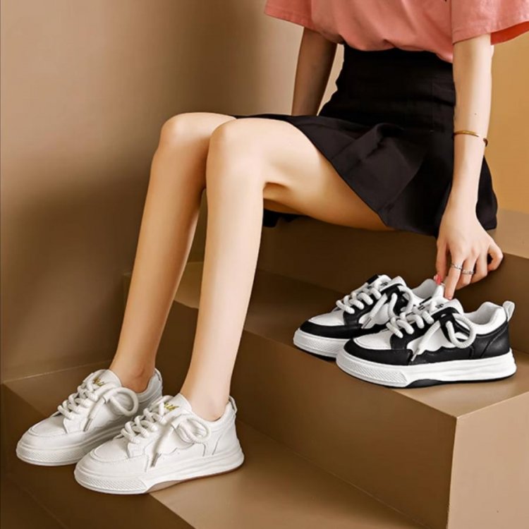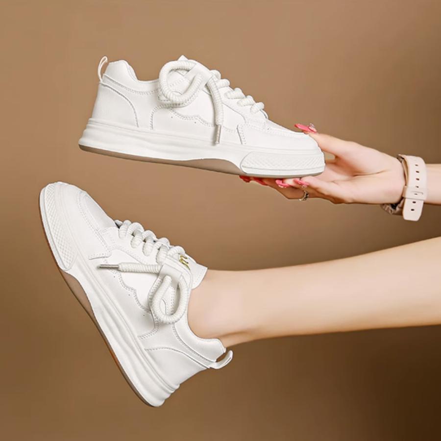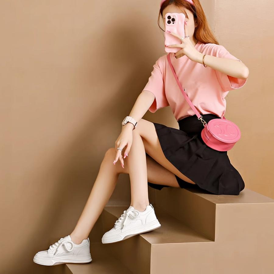 履きやすいシューズ 通勤通学 韓国ファッション おしゃれ 美脚スニーカー レースアップ カジュアルPUレザー 可愛い太紐