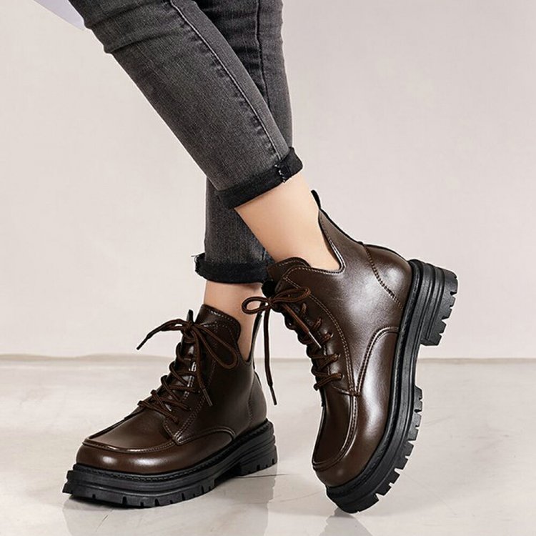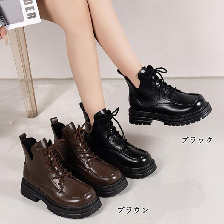 トラックソールブーツ レディース 歩きやすい ボリュームソール レースアップブーツ アンクルブーツ ショートブーツ 秋冬