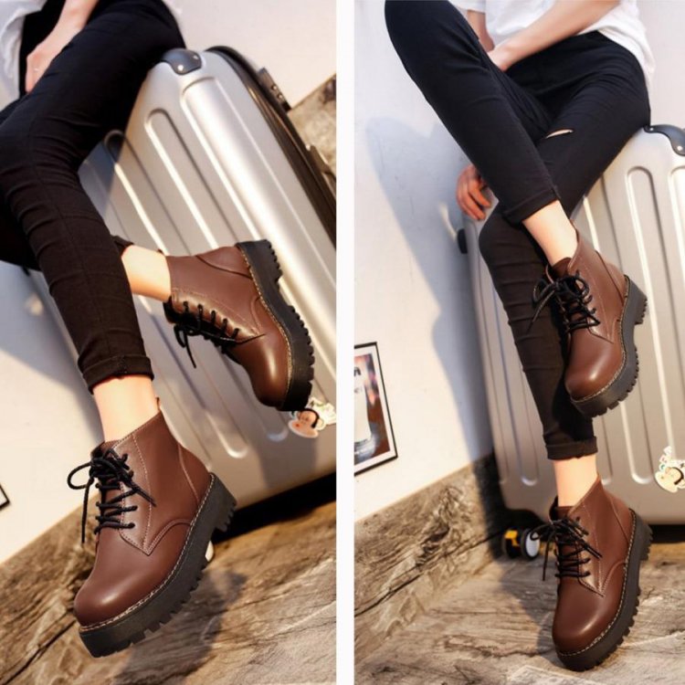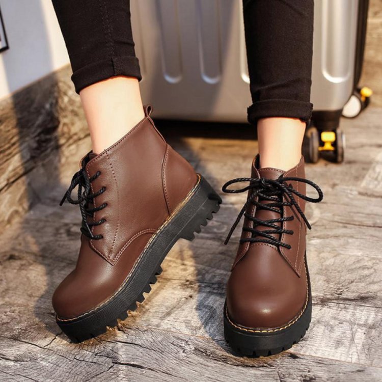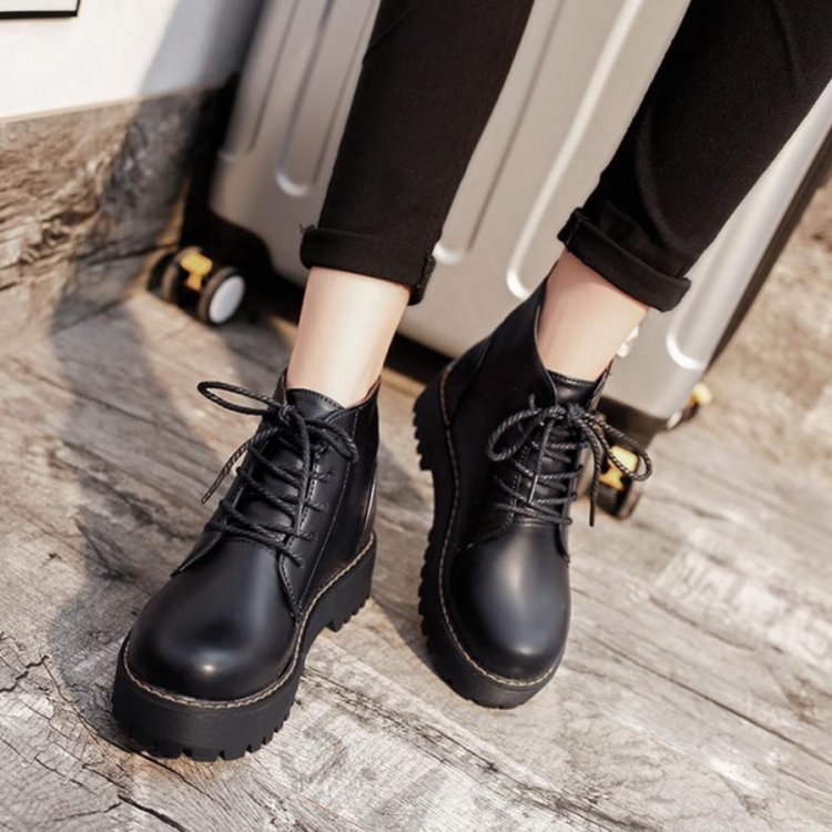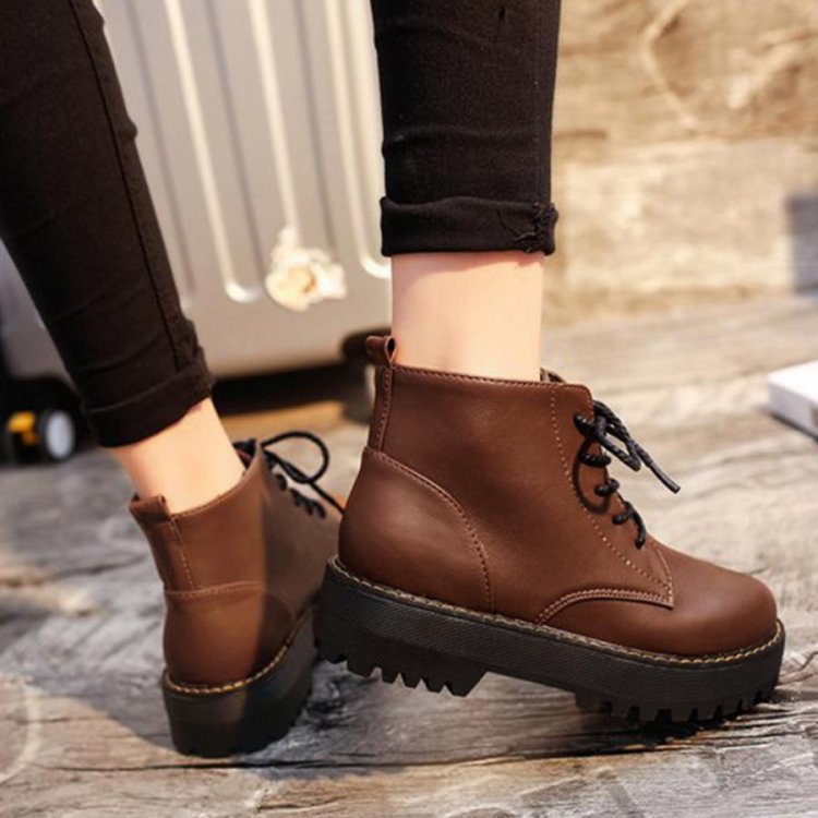 トラックソールブーツ おしゃれ ボリュームソール 編み上げシューズ ローヒール靴 アンクルブーツ カジュアル靴 秋冬人気