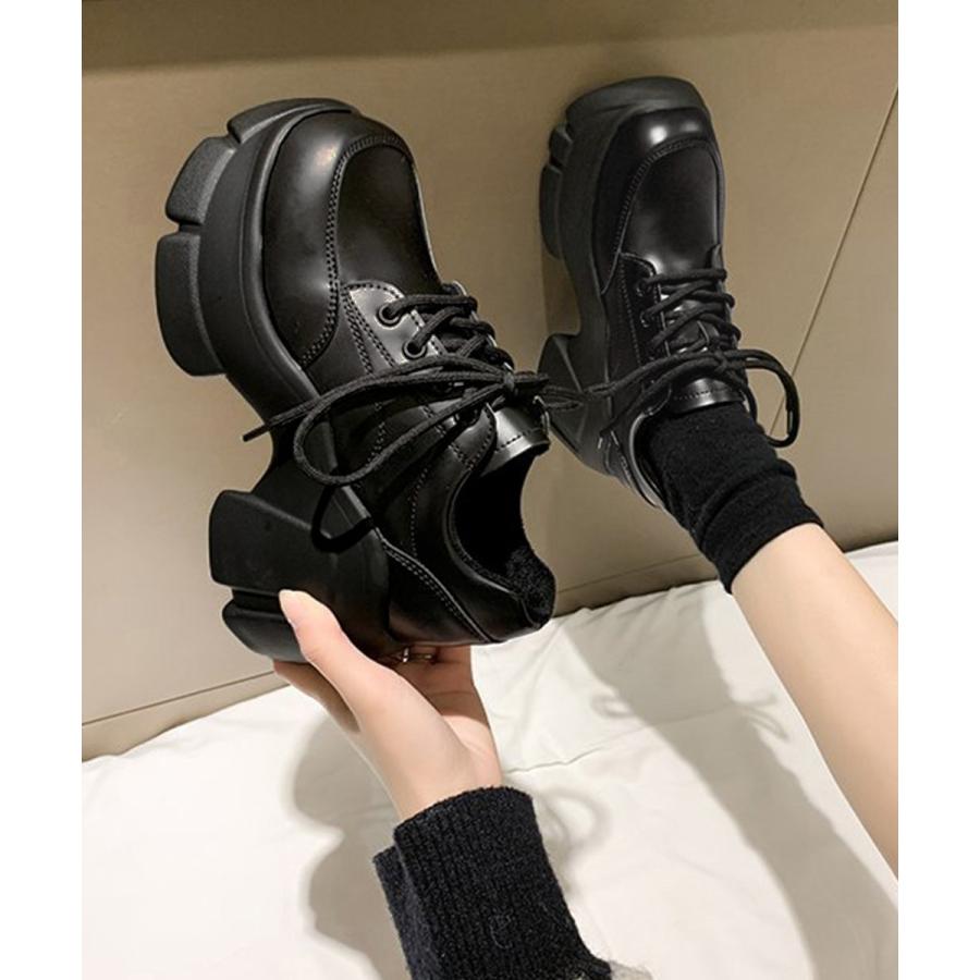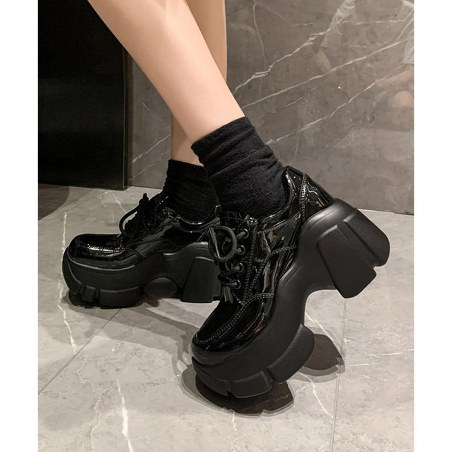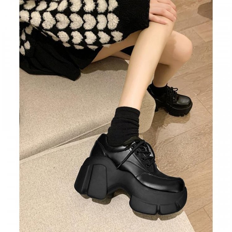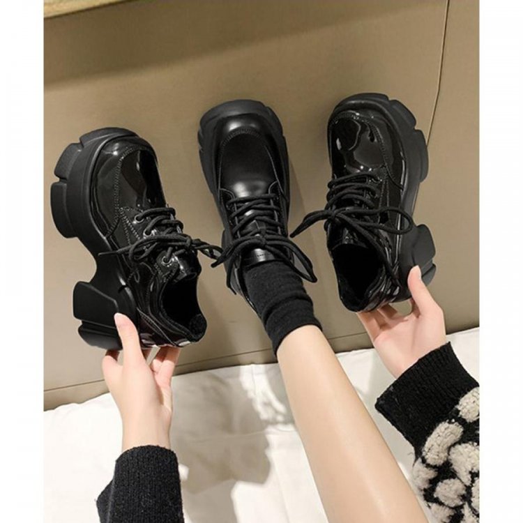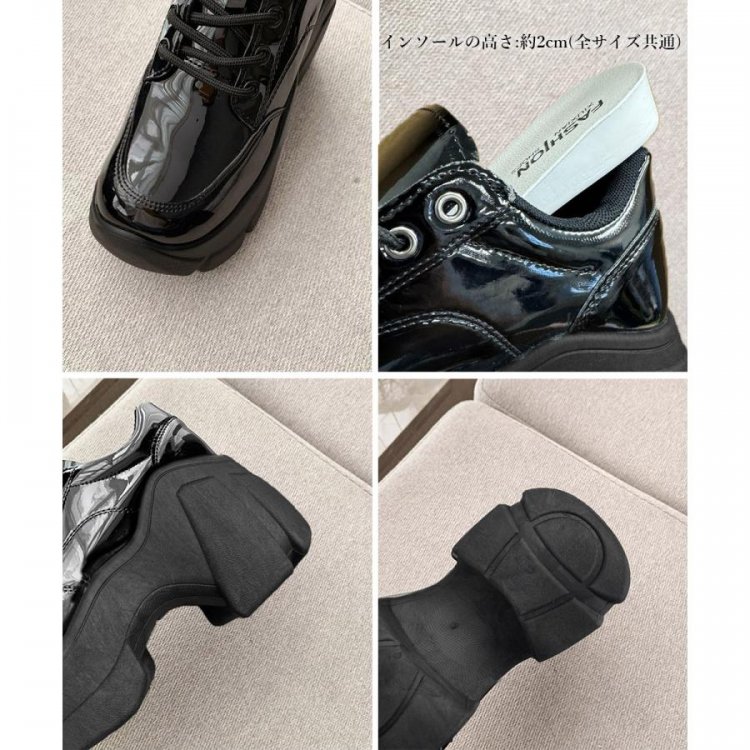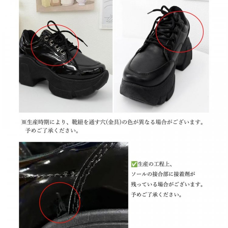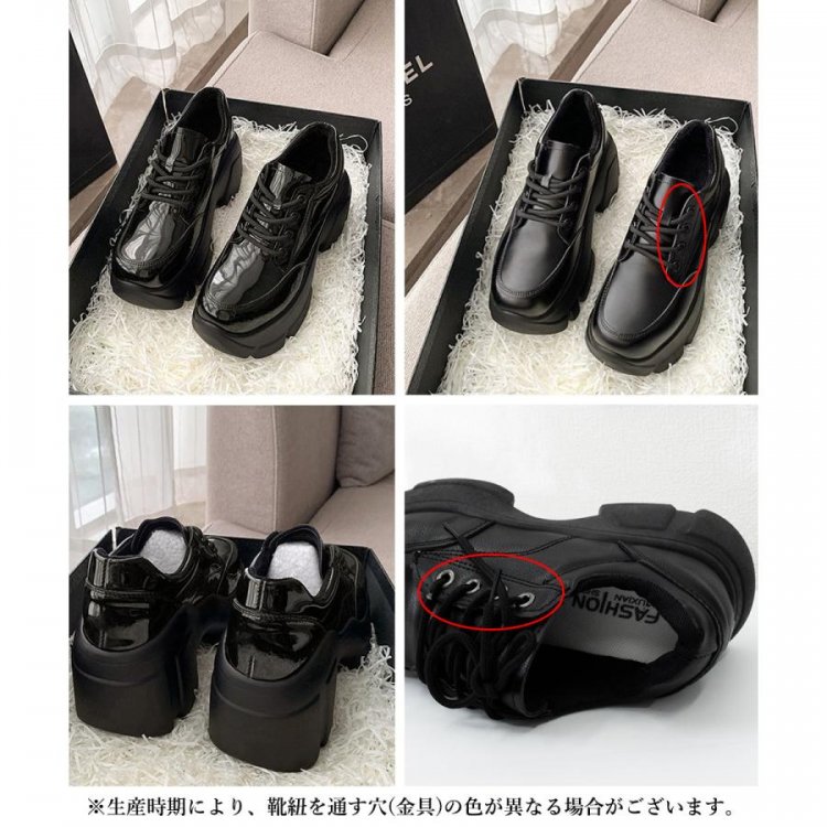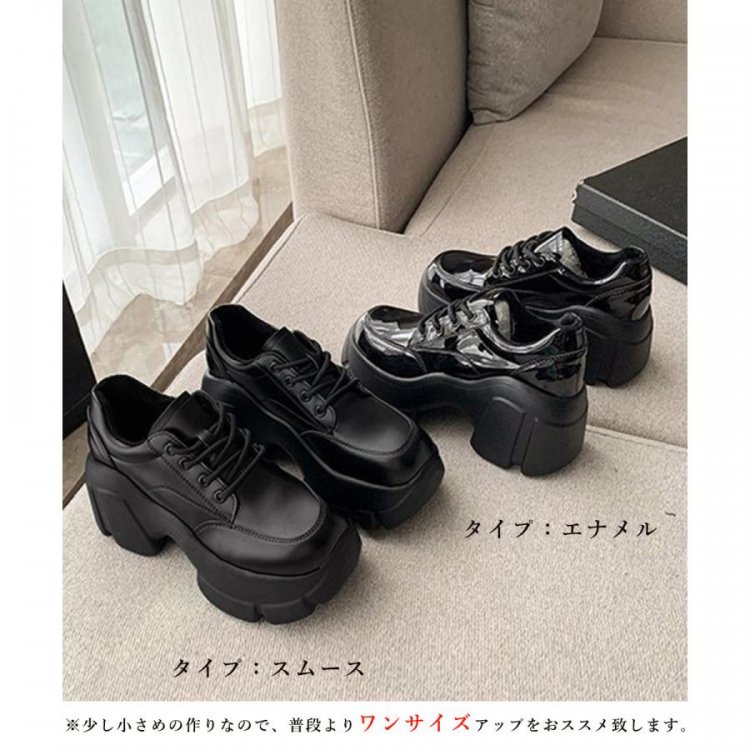 レディース ドレスシューズ 美脚脚長 ボリュームソール 歩きやすい 合皮厚底靴 編み上げ レザー調カジュアル 厚底5cm