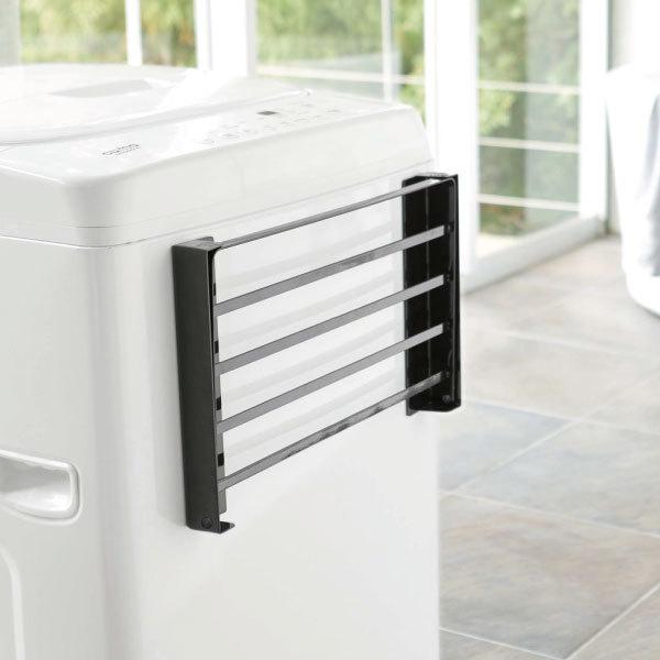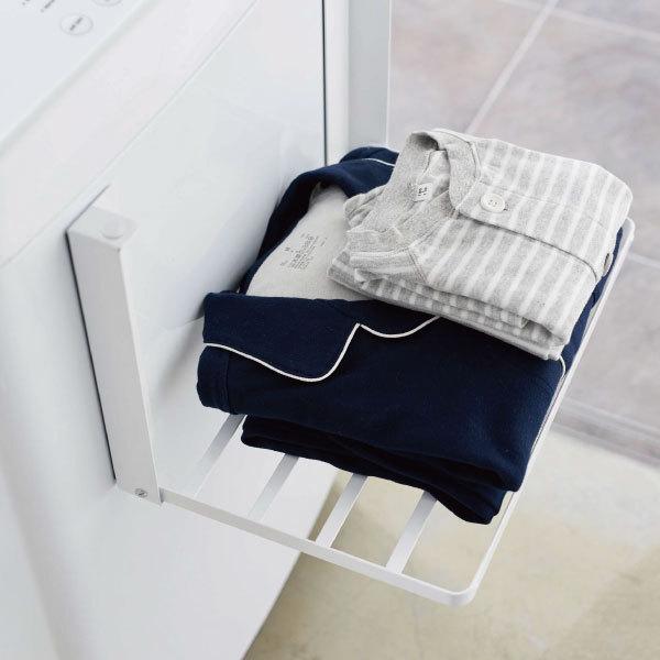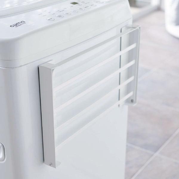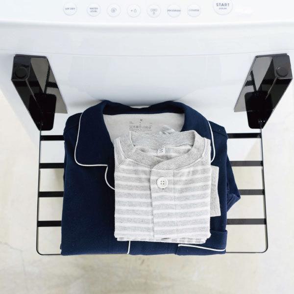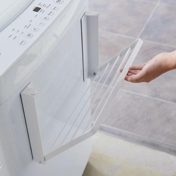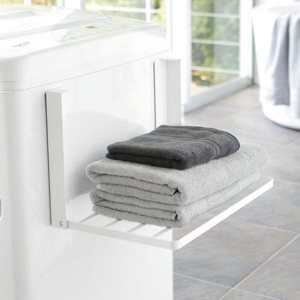 マグネットで簡単に取り付けられる折り畳みラックです。様々な空間に馴染む、モノトーンのシンプルなデザイン。洗濯機に取り付ける事で、脱衣所に収納スペースを気軽に増やせます。入浴後に使うバスタオルや着替えの一時置きにぴったりです。使わないときは折り畳んでスリムに収納できます。省スペースなデザインで、一人暮らしの方や脱衣所に収納家具を置く場所のない方にもおすすめです。強力なマグネットでしっかり固定されるから、ずり落ちずストレスフリー。本体は水や汚れに強いスチール製です。