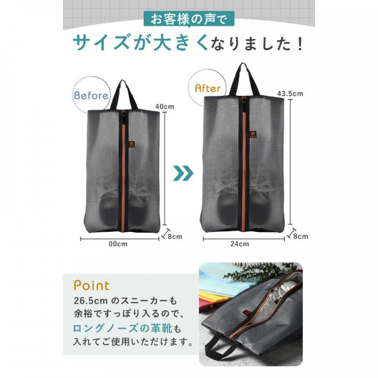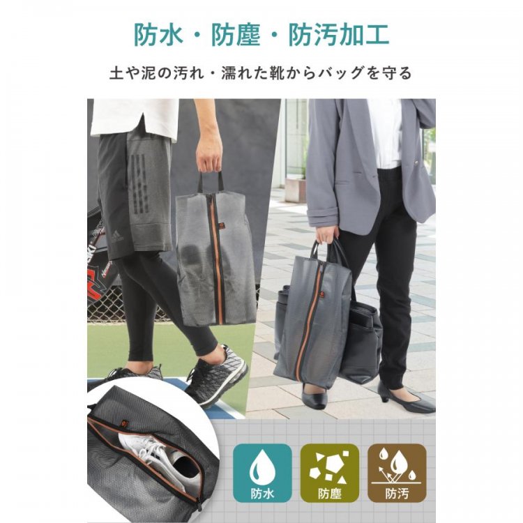 ポリエステル製の 大きめサイズ シューズバッグ です。防水性に優れておりますので雨の日に シューズ を雨から守ります。スポーツジムやゴルフ等のスポーツにもおすすめです。