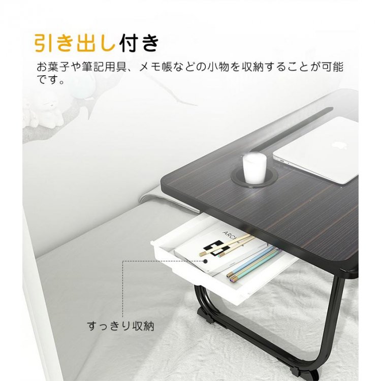 引出しを付けているので、お葉子や筆記用具、メモ帳などの小物を収納することが可能です。