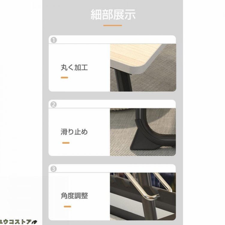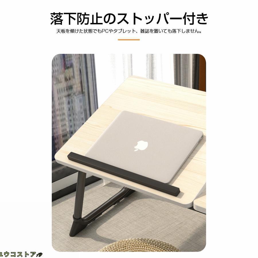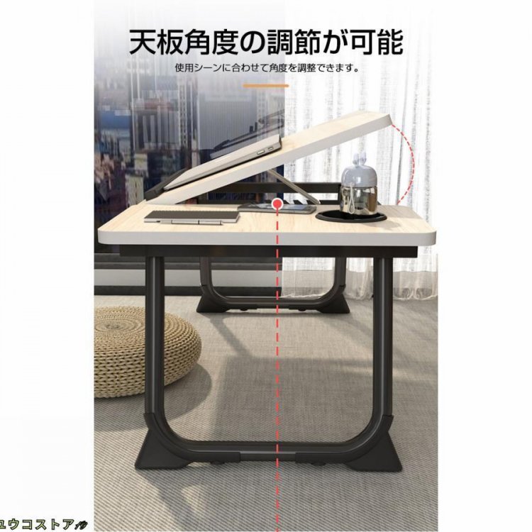 天板を傾けた状態でもPCやタブレット、雑誌を置いても落下しません。