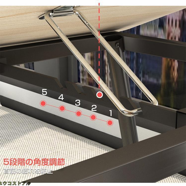 5段階の天板角度の調節が可能。自分楽な姿勢と好きな角度でPCを操作できます。