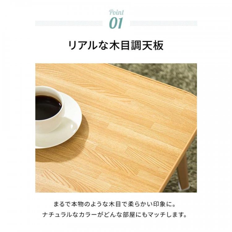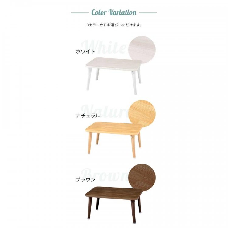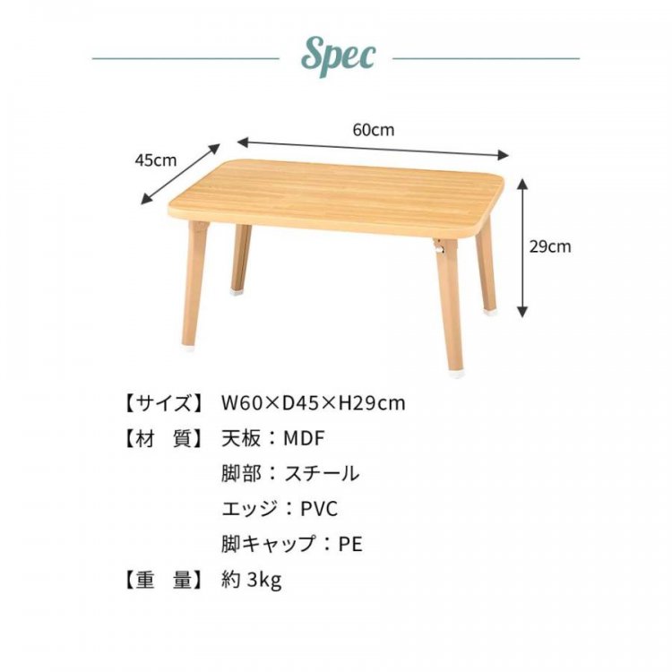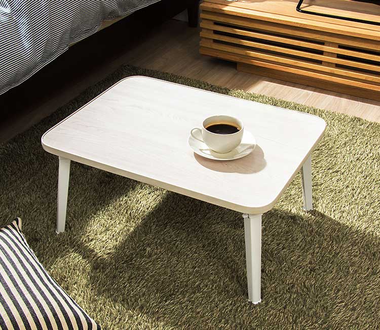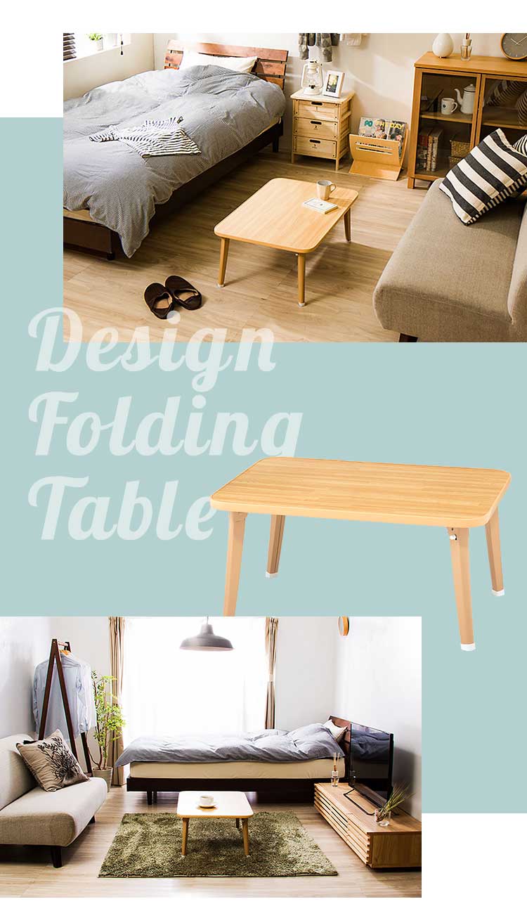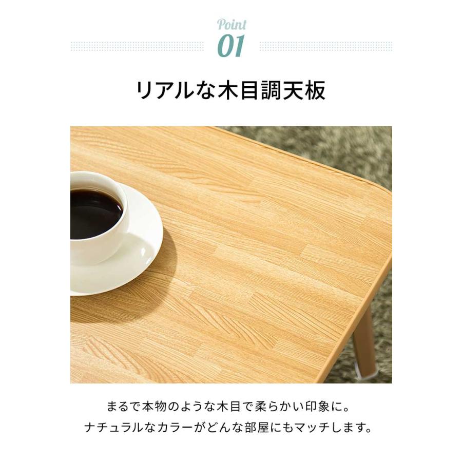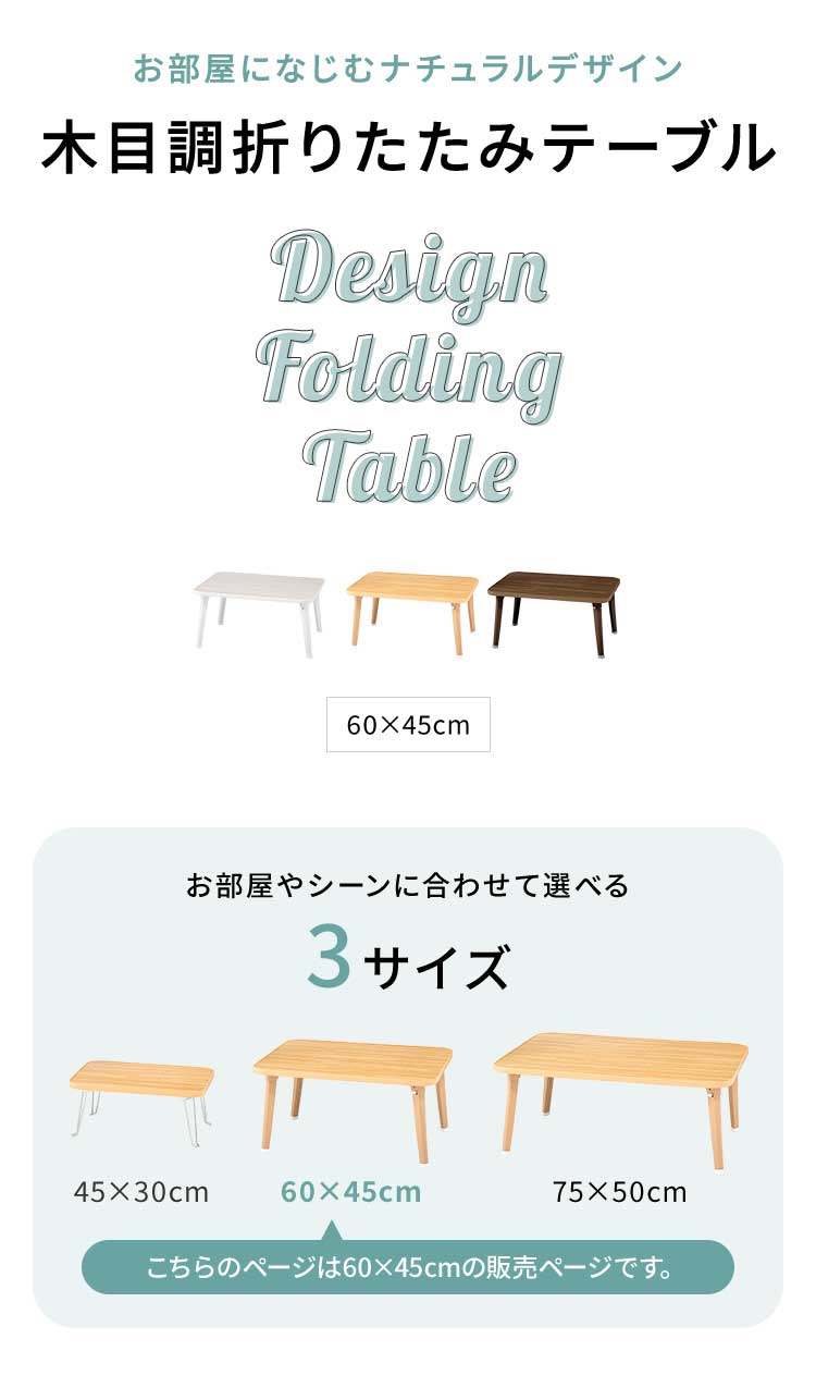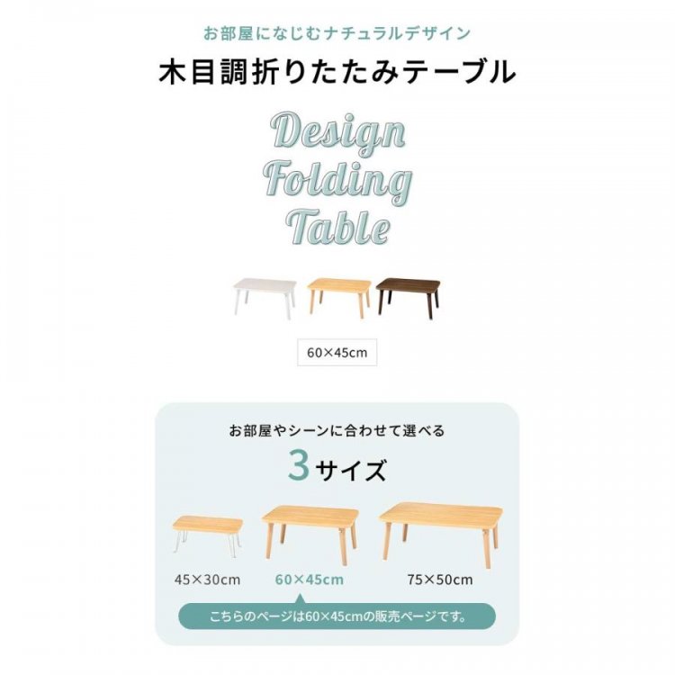 ナチュラルな木目調が美しい折りたたみテーブル。