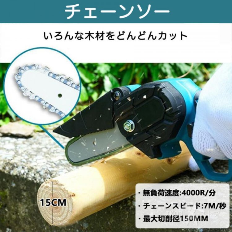 木材のカットに最適、無負荷速度4000r/m 、チェーンスピード7m/s。