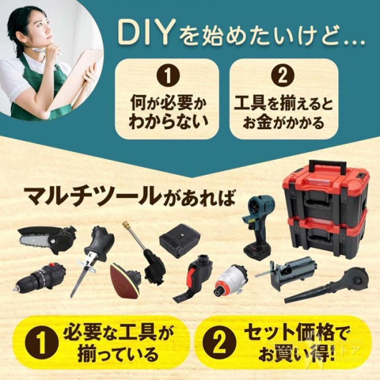 DIYに大活躍。穴あけ?ネジ締め、切断など様々な用途で幅広く対応できます。 アタッチメントを交換するだけで様々な作業が行えるため、それぞれ専用工具を買い揃えるよりリーズナブルです。