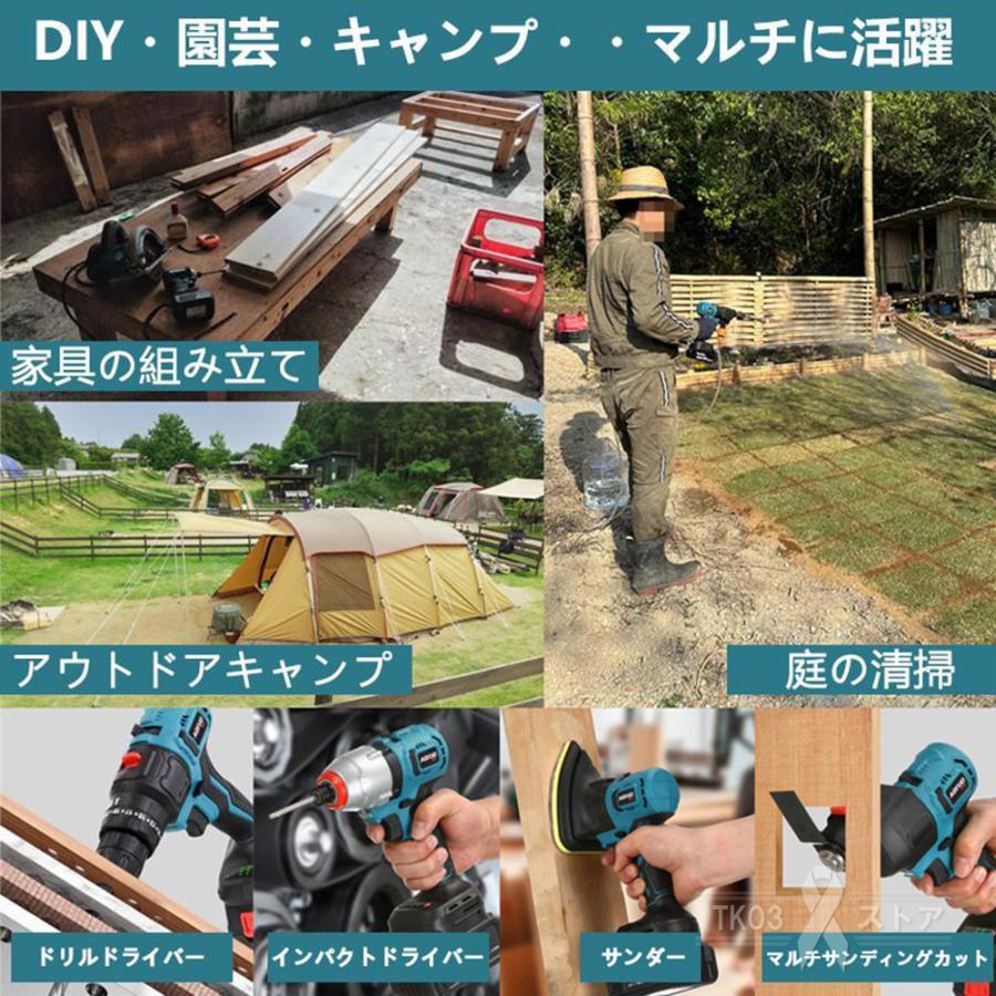キーワード:ドリルドライバー、ジグソー、サンダー、チェーンソー、高圧洗浄機、インパクトドライバー、マルチサンディングカットソー、レシプロソー、ブロワー、USB充電アダプター、インパクトドリル、レシプロソー、空気ポンプ、マキタ、1台16役