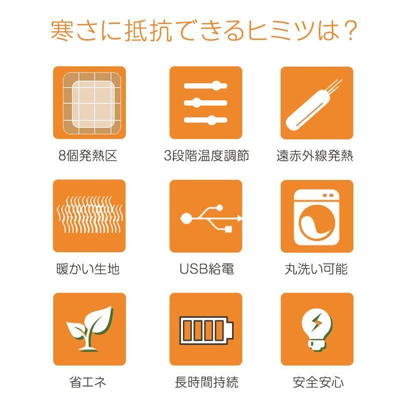 【急速発熱保温安全】8個の加熱ヒーターは炭素繊維を採用して、他社のより更に発熱箇所が多くなり、より厚いので、急速発熱になり、熱が長く持続できます。