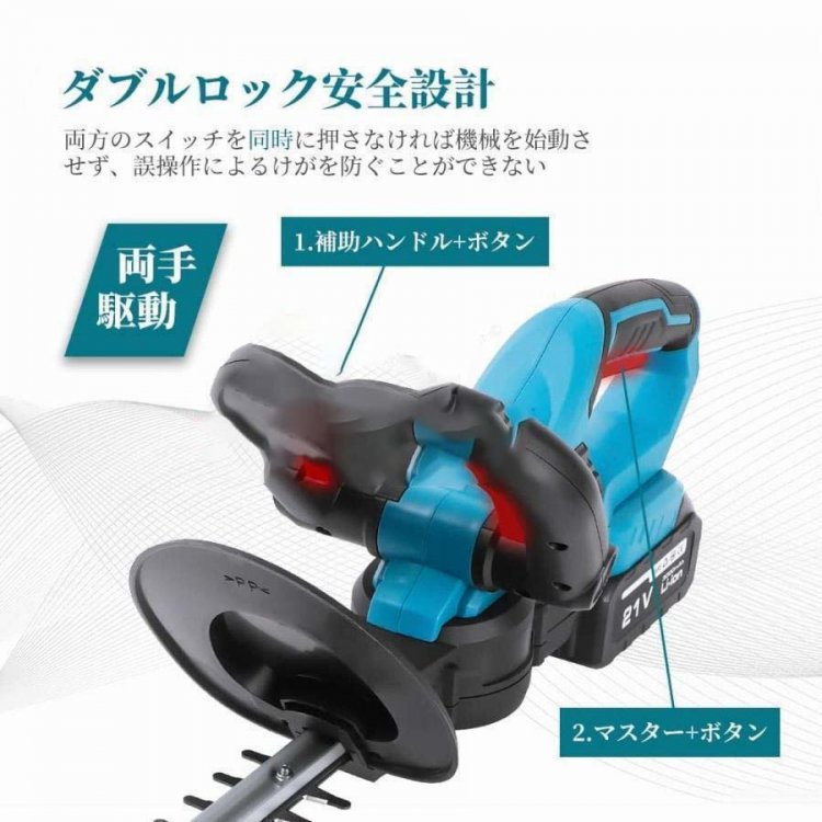 【ダブルスイッチプロテクション+低ノイズ】デュアルスイッチコントロールは、ヘッジトリマーを開始する前に2つの確認を行うように設計されているため、二重の保護を提供し、不正スタートの潜在的な危険を回避します。低騒音設計、回転速度は約1600回/分です、家族や隣人への騒音なし、低振動、古他のモデルよりも静か。