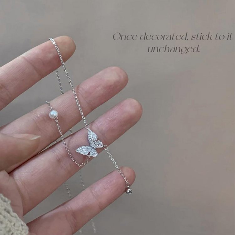 華奢で女性らしい細さのチェーンで着けやすく、トレンドを押さえた蝶々モチーフのチェーンネックレス。