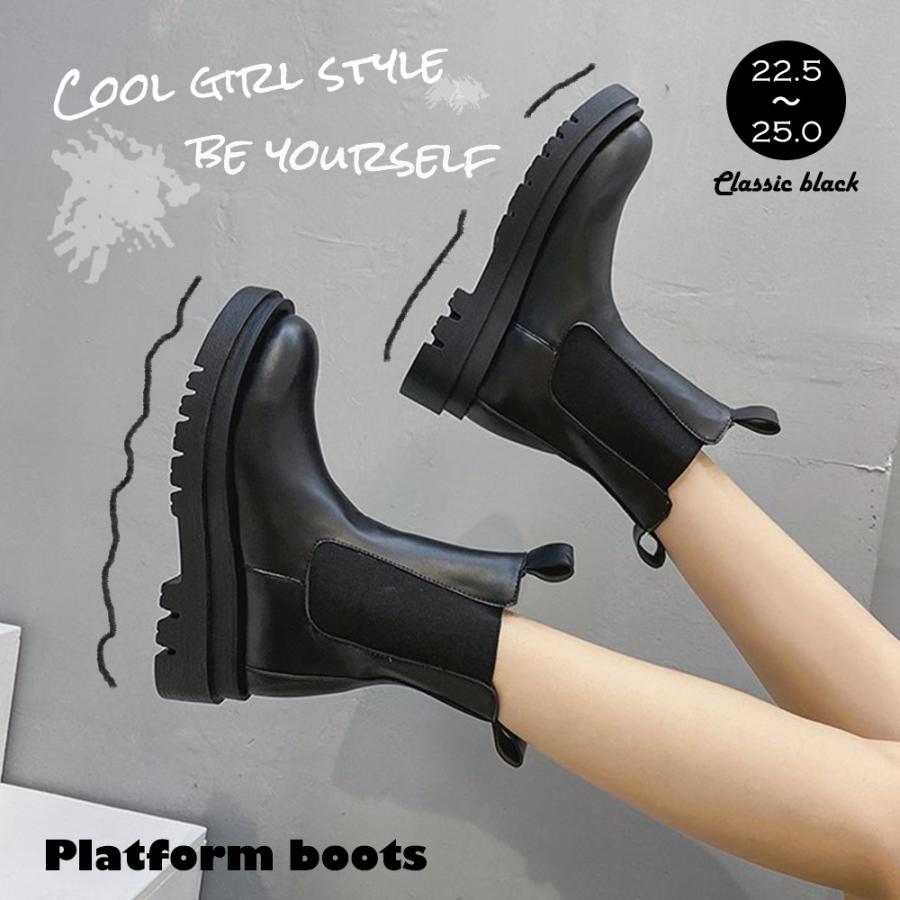 シューズ ブーツ 厚底 黒 ジップアップブーツ 韓国ファッション カジュアル 人気 オルチャン 歩きやすい 秋冬
