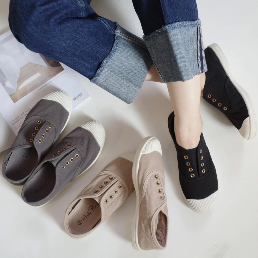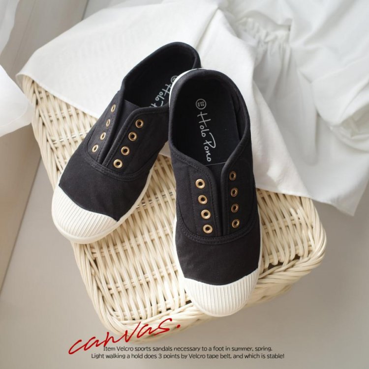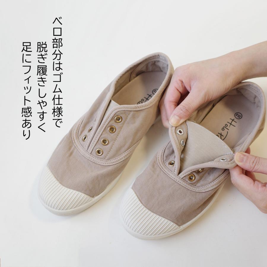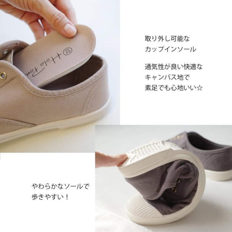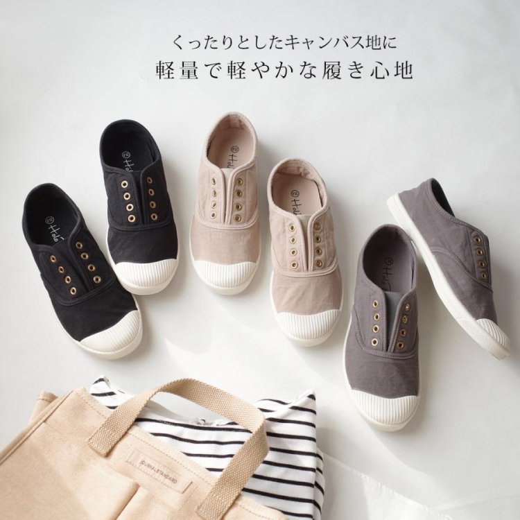 くったりとしたキャンバス地で軽量で軽やかな履き心地