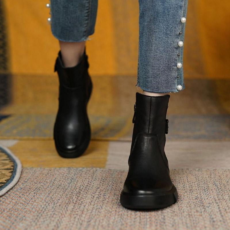 美脚と歩きやすさの両方を叶える走れるブーツ。ある程度の高さですらりと脚長効果を持たせながら太ヒールでソールが滑り止めで安定感もしっかりあるブーツ。