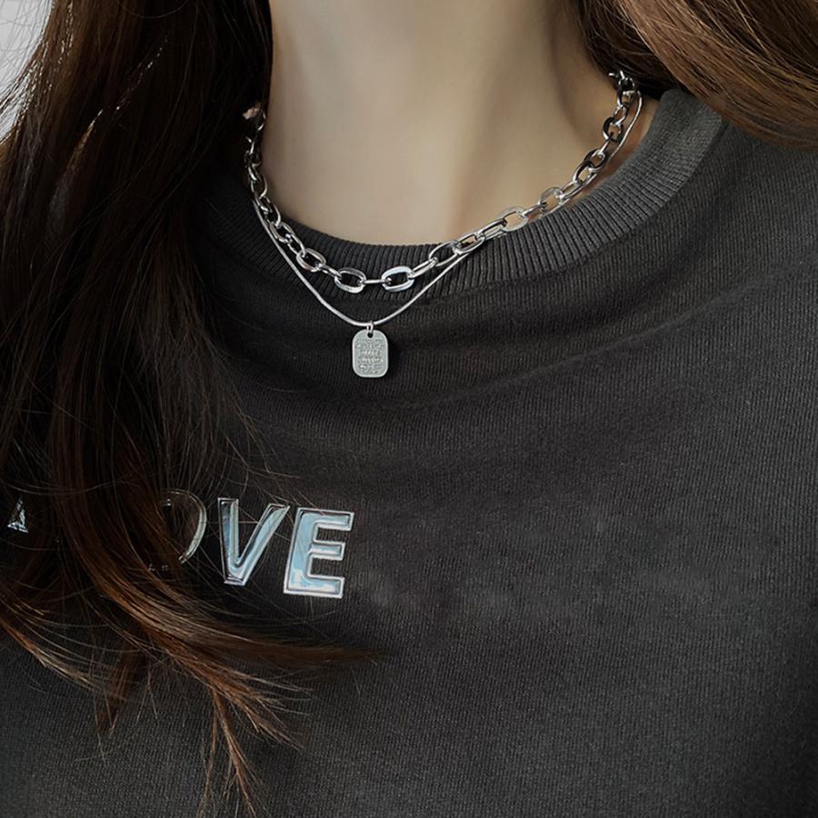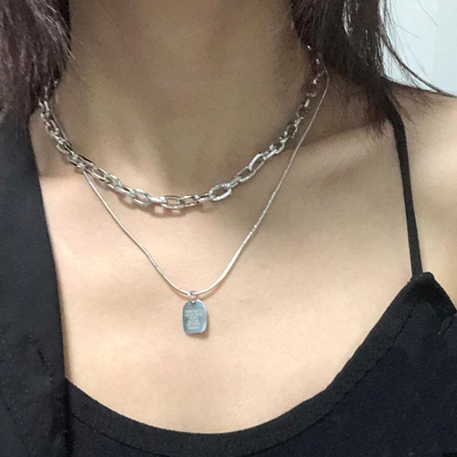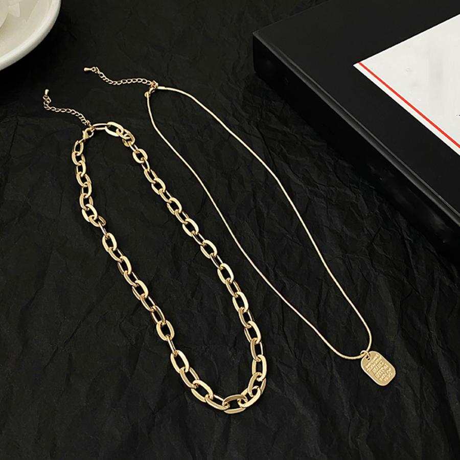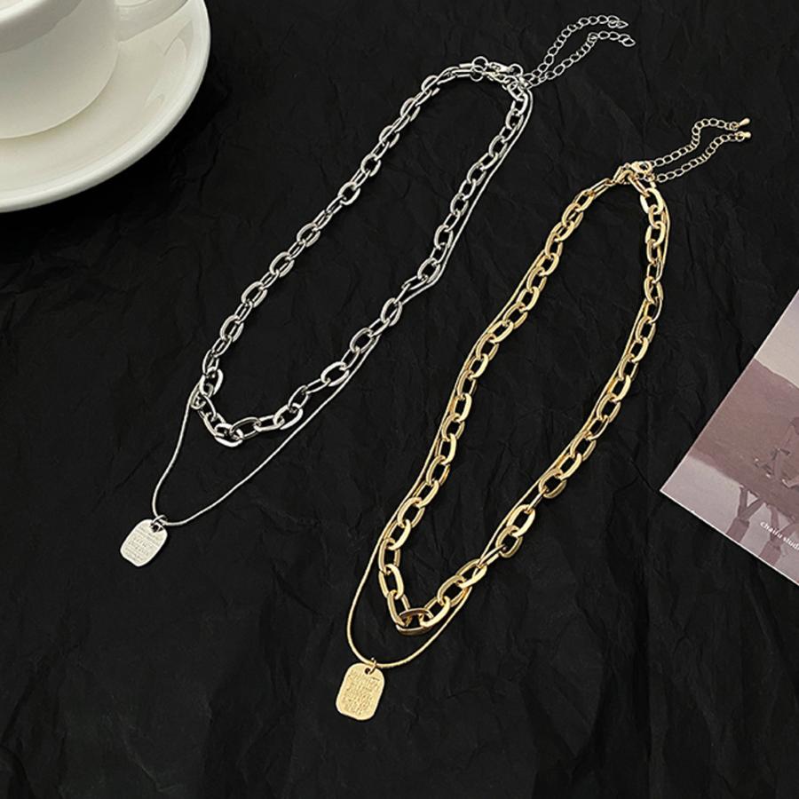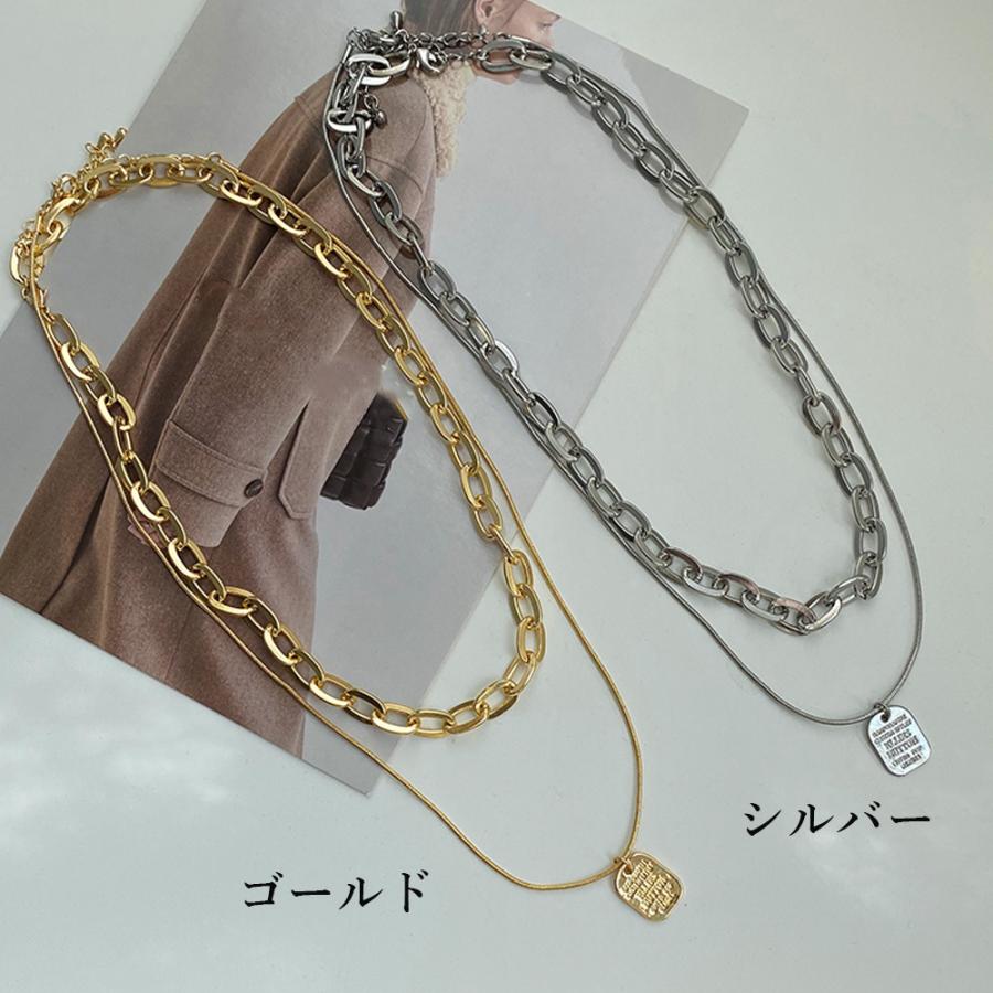 2連ネックレス レディース 韓国アクセサリー オフィスカジュアル 文字モチーフ風ペンダント プチプラアクセサリー お洒落