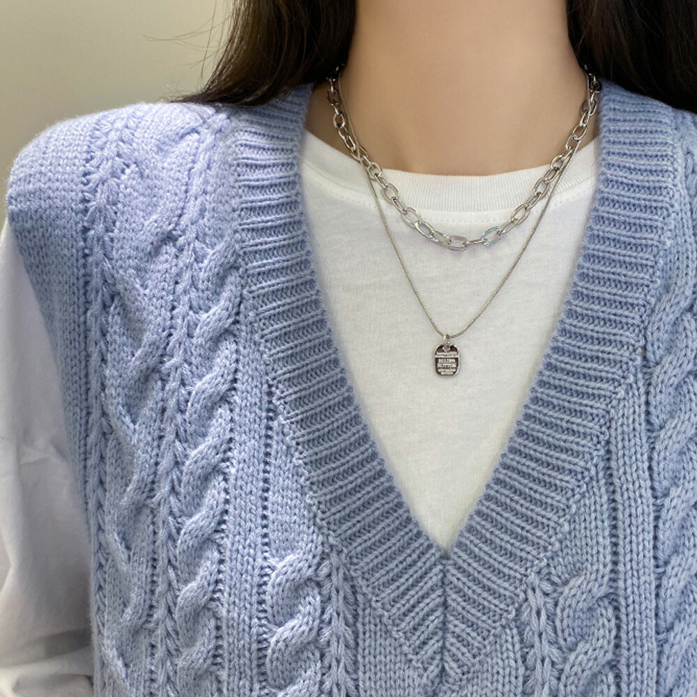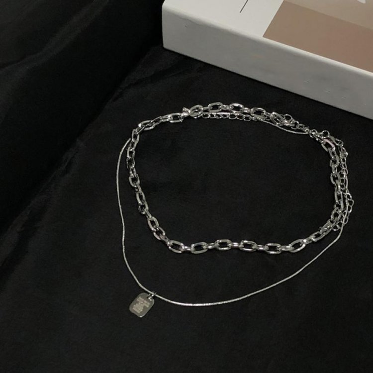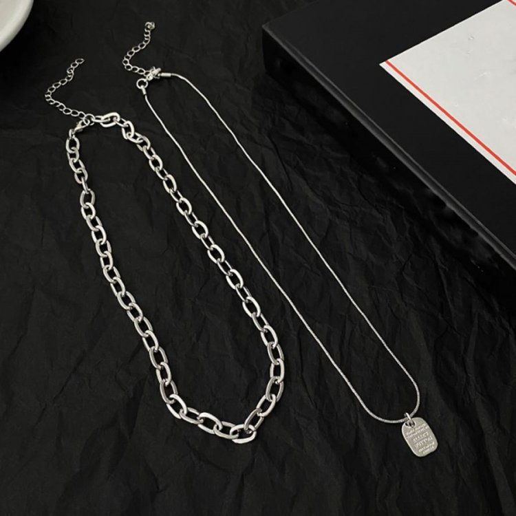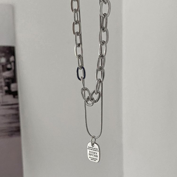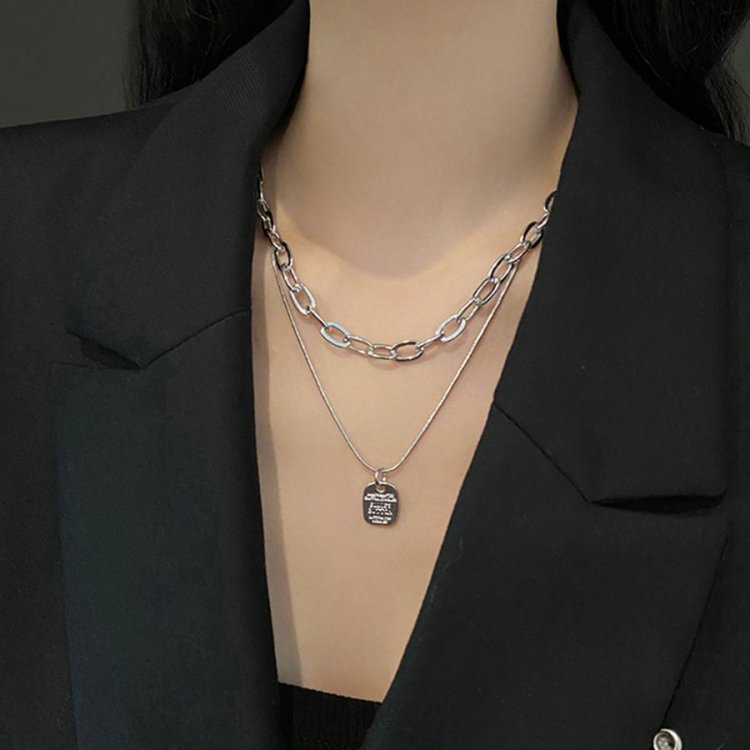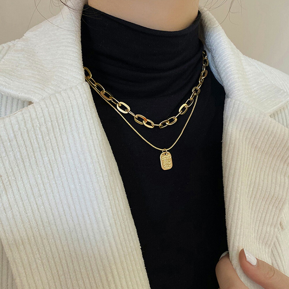 2連ネックレス レディース 韓国アクセサリー オフィスカジュアル 文字モチーフ風ペンダント プチプラアクセサリー お洒落