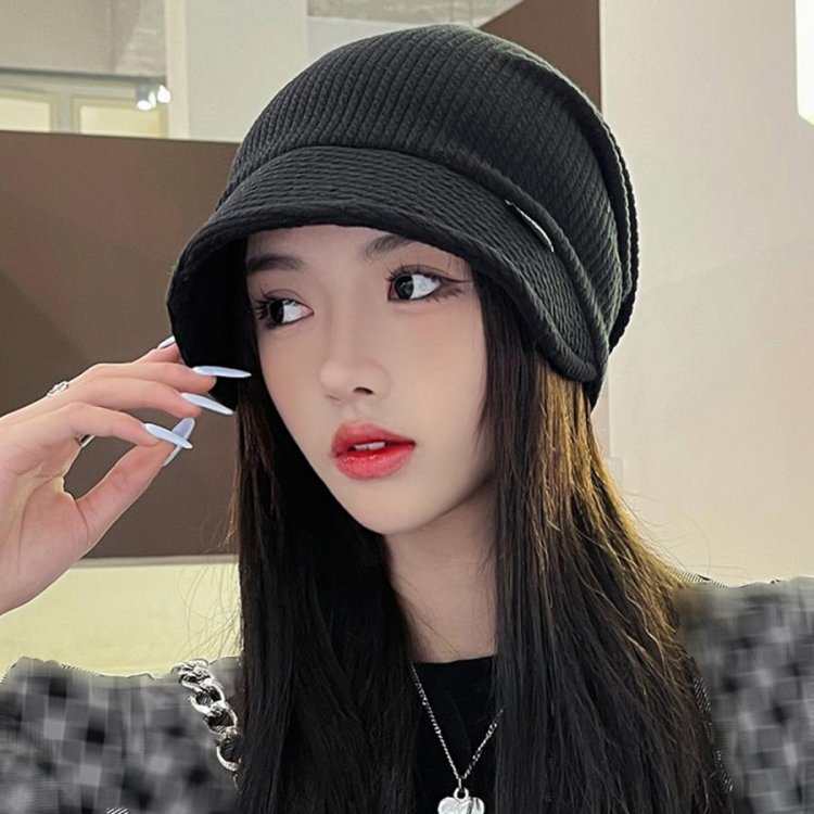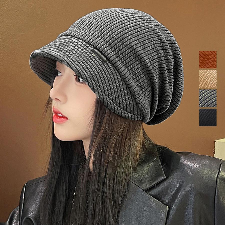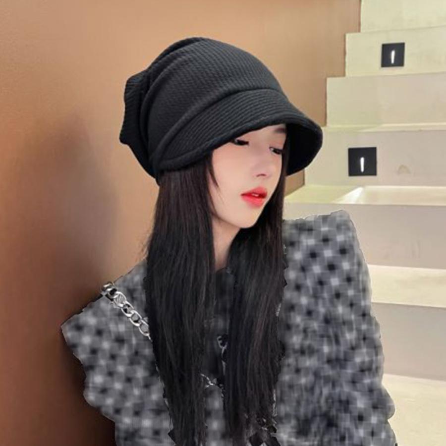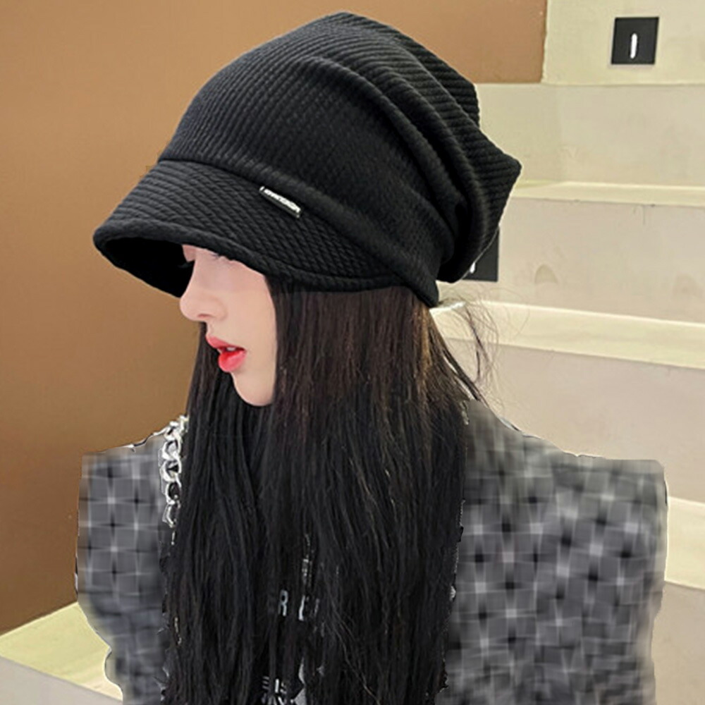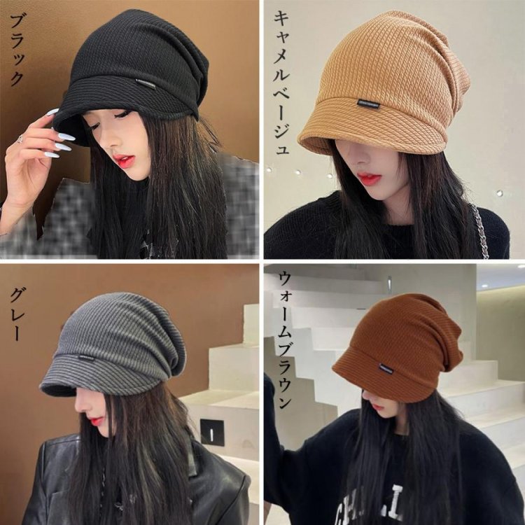 ニット帽 くしゅくしゅ ニットキャップ つば付き 韓国風 ハット帽 無地 カジュアル ハンチング帽 カジュアル ぼうし黒