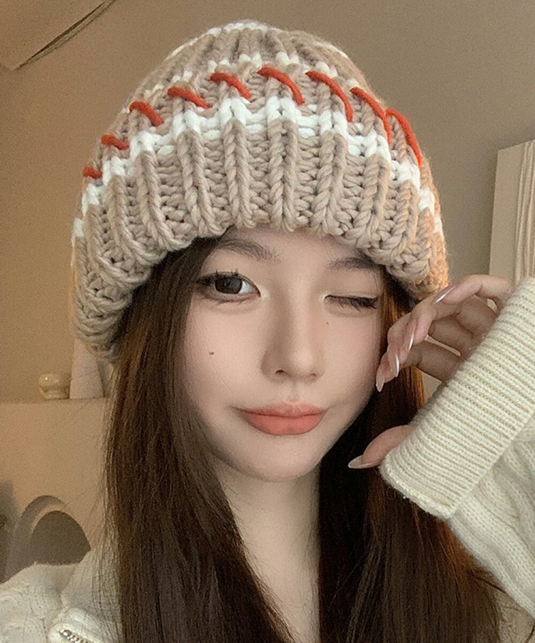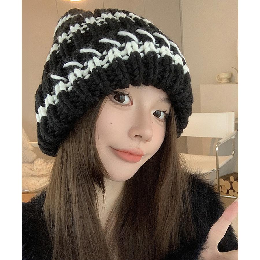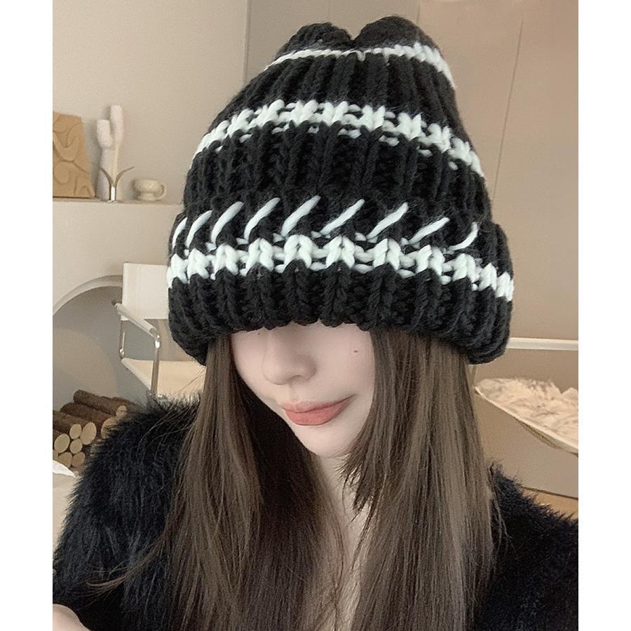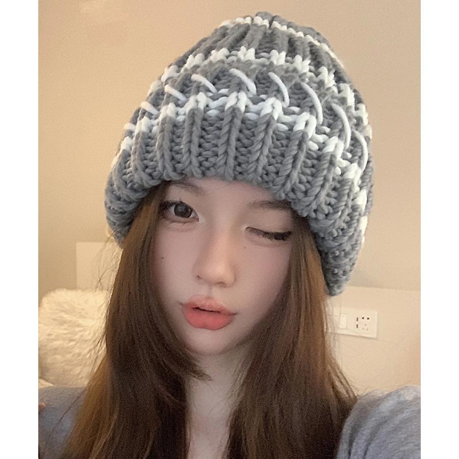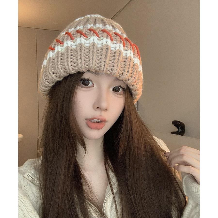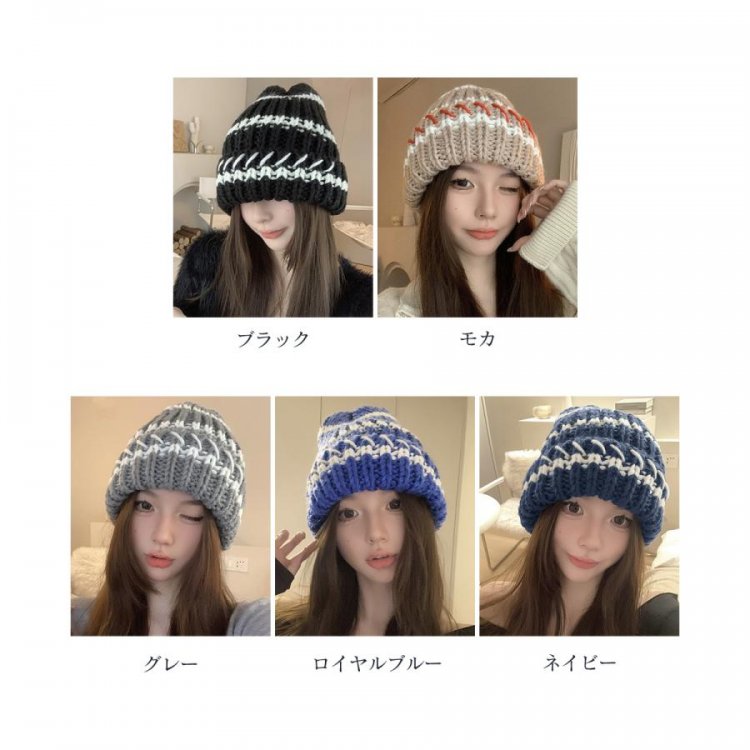 配色ニットキャップ 折り畳み カジュアル あったか 暖かい 厚手 ニットぼうし おしゃれ ファッショ小物 アウトドア旅行