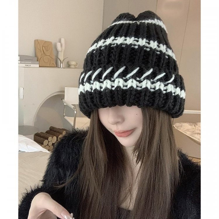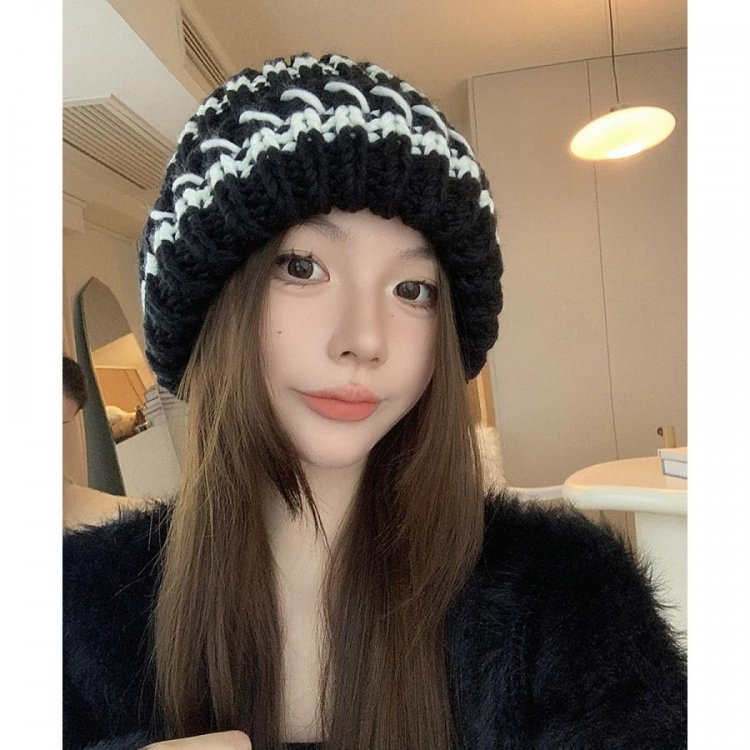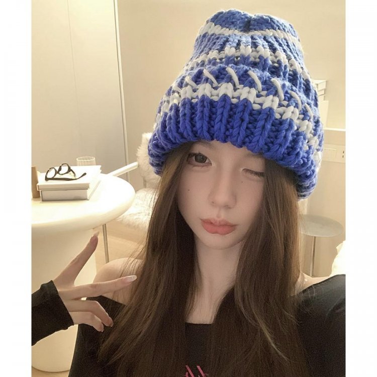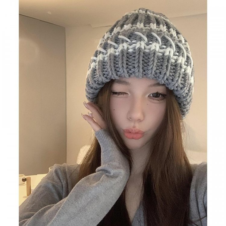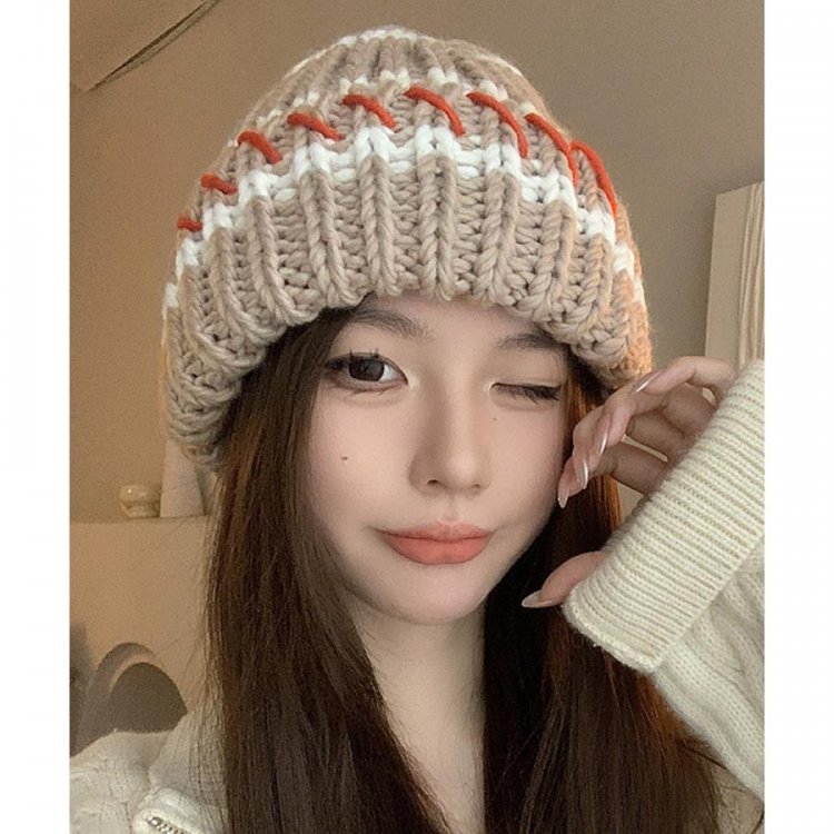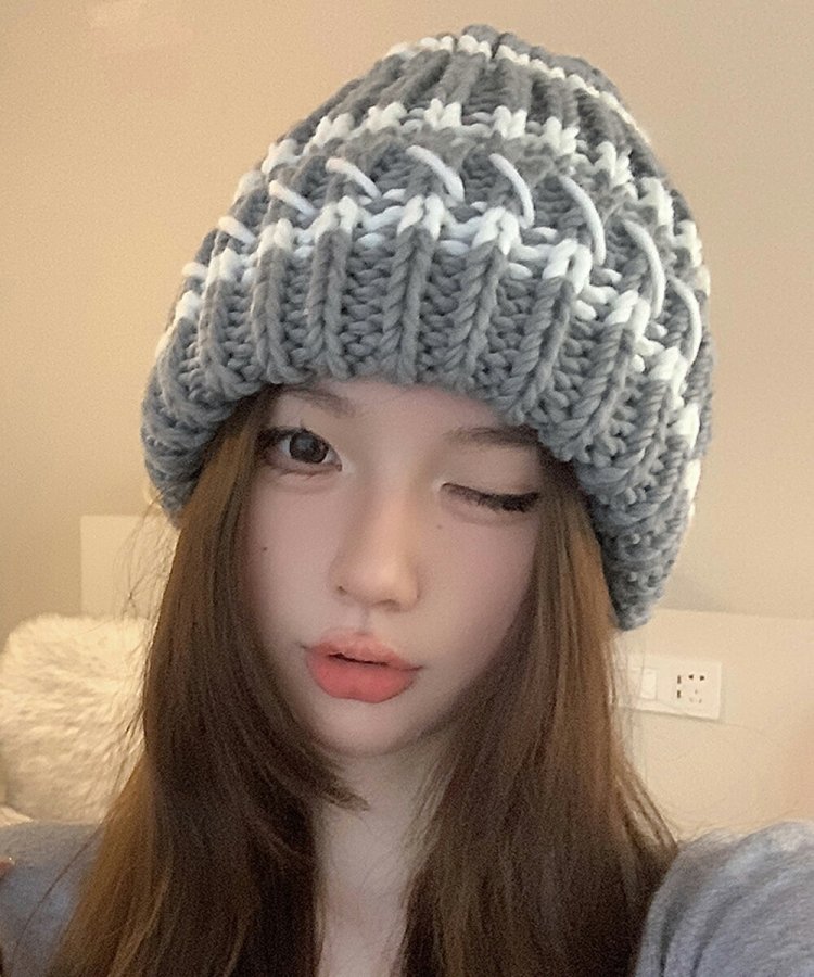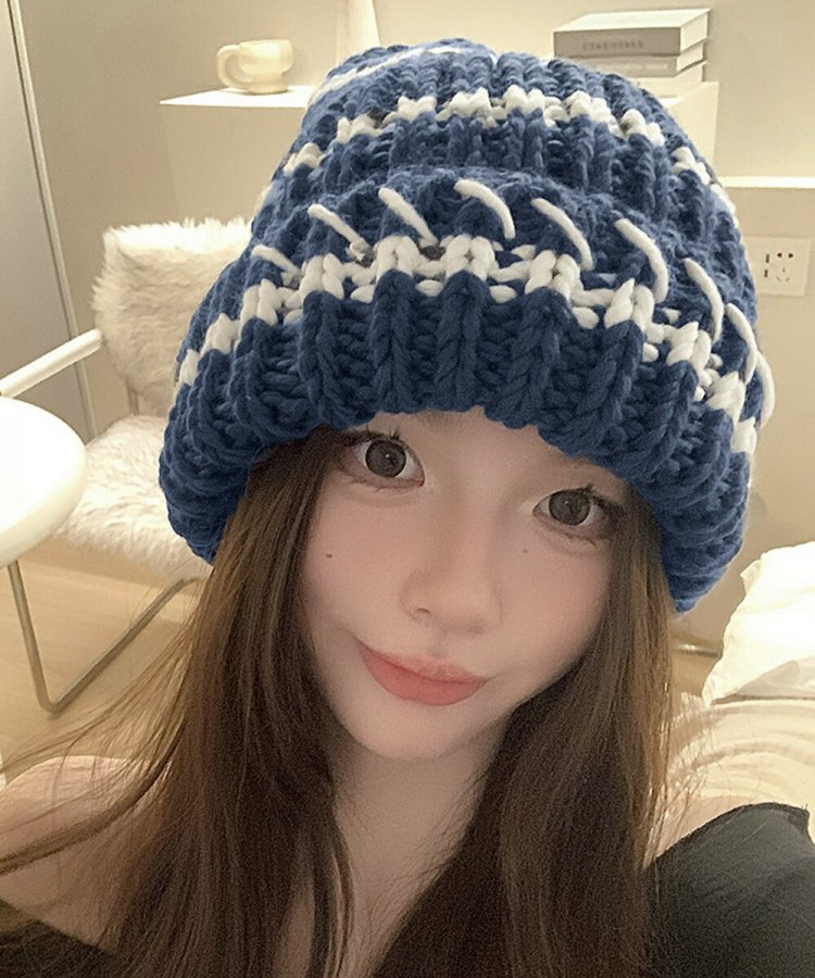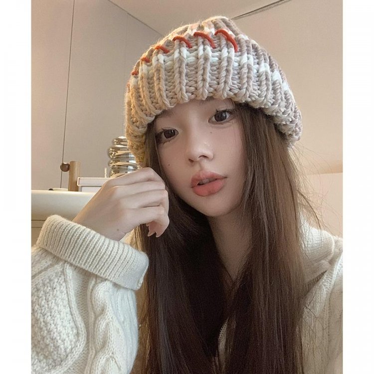 配色ニットキャップ 折り畳み カジュアル あったか 暖かい 厚手 ニットぼうし おしゃれ ファッショ小物 アウトドア旅行