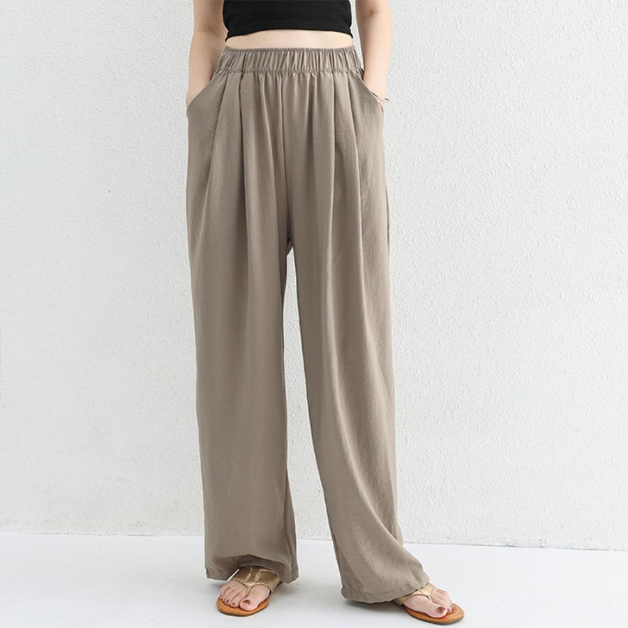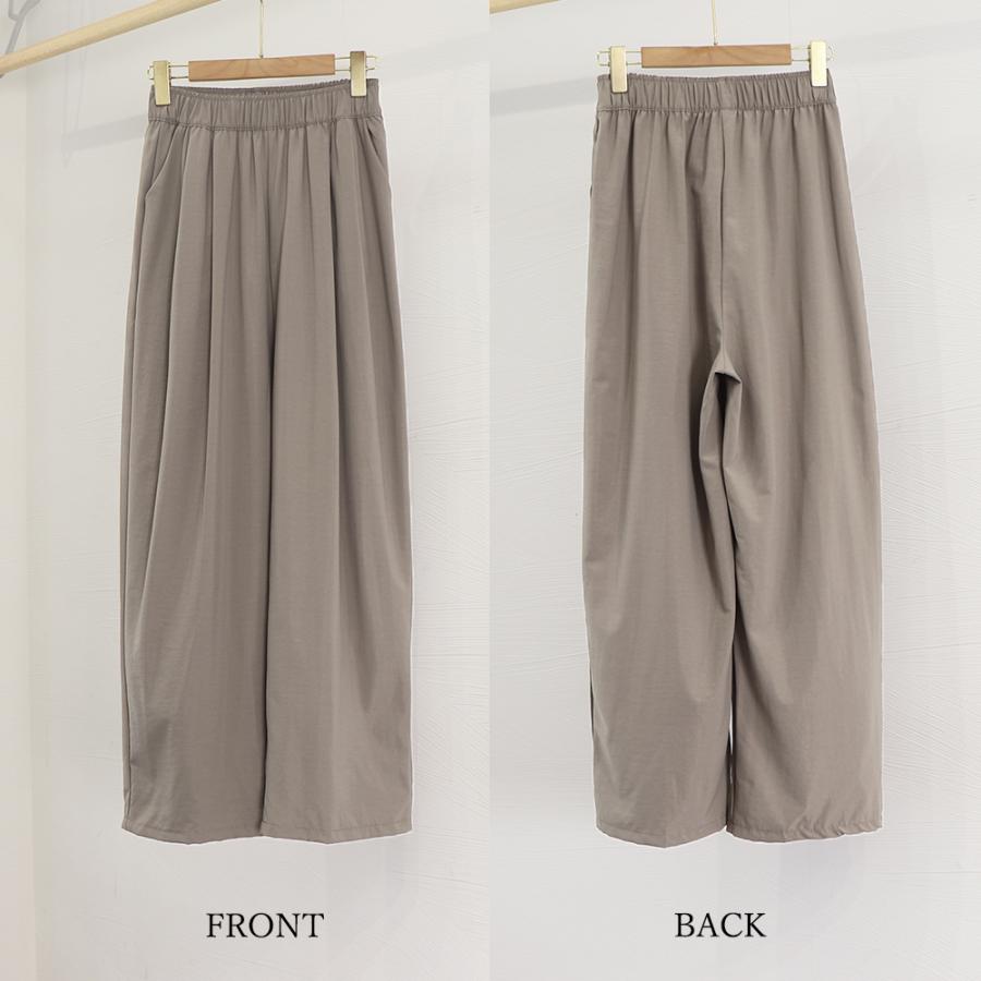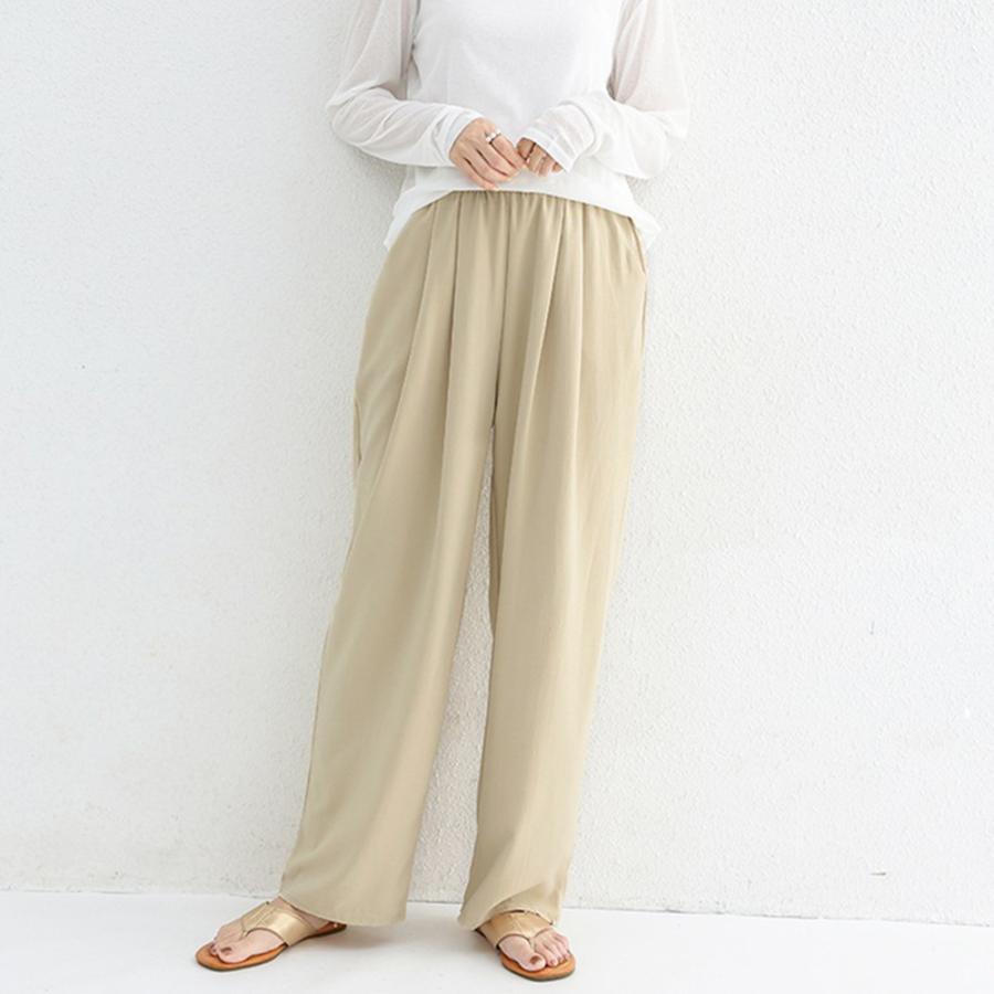ボトムス ゆったり イージーパンツ 涼しげ サラリ 美脚 ロングパンツ タック入り 体型カバー 着やせパンツ 通勤通学