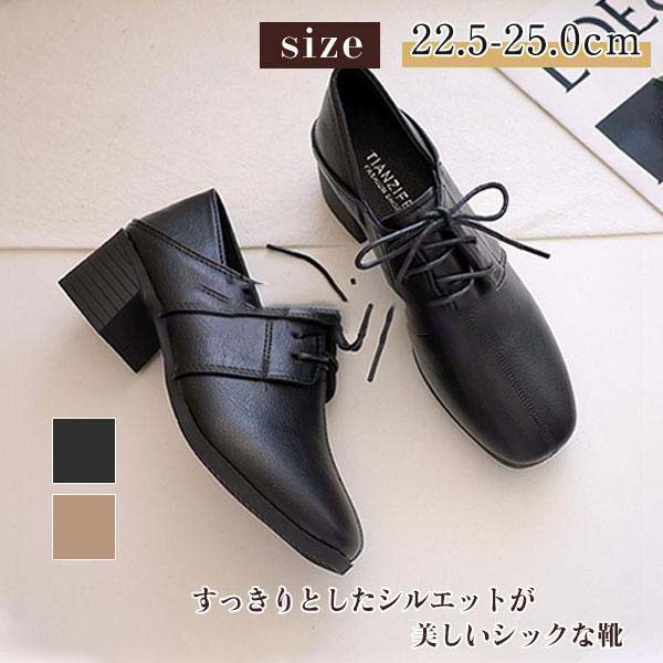- 厚底ローファー レースアップ 美脚くつ