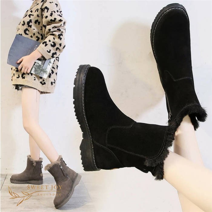 - ショートブーツ 美脚 リブ切り替えブーツ