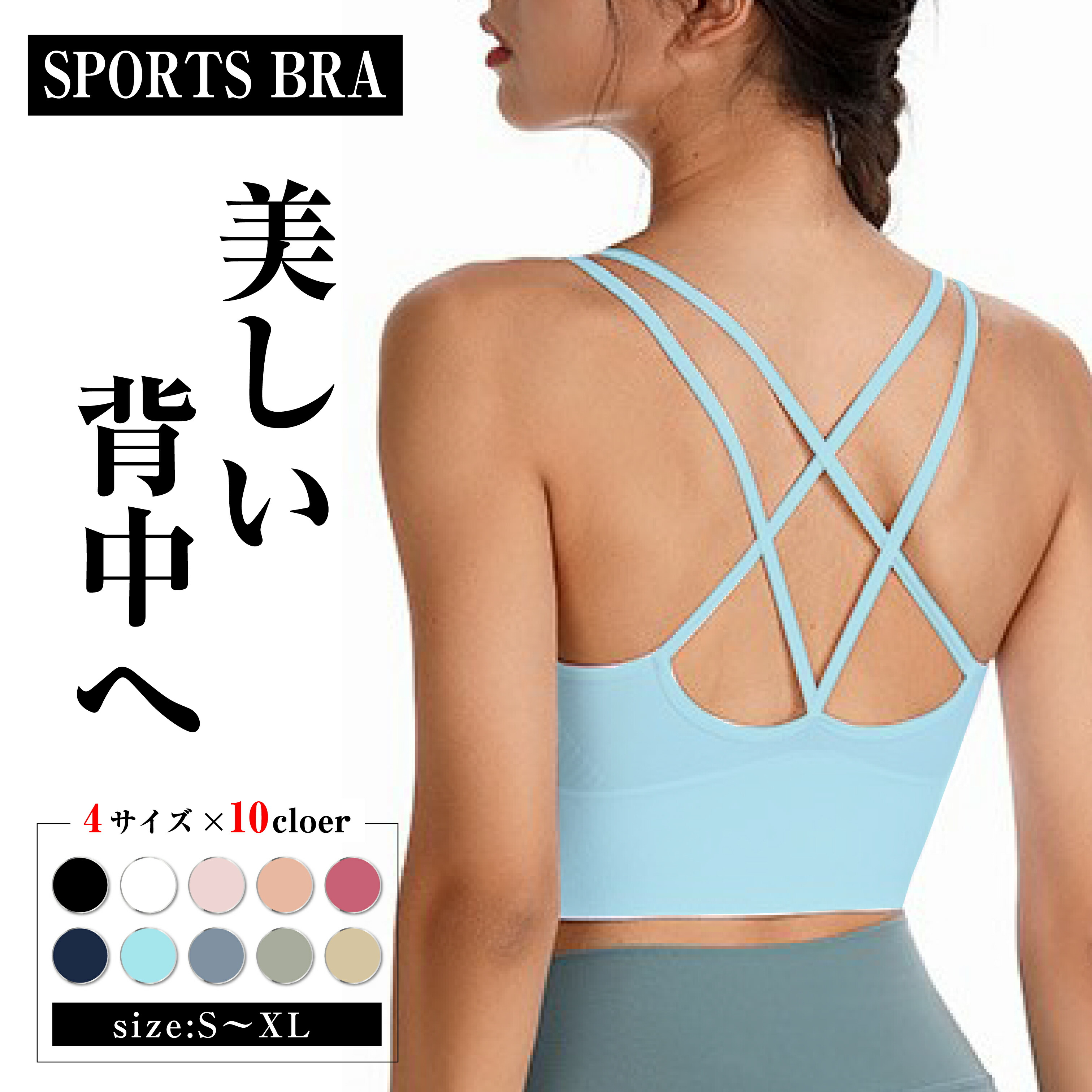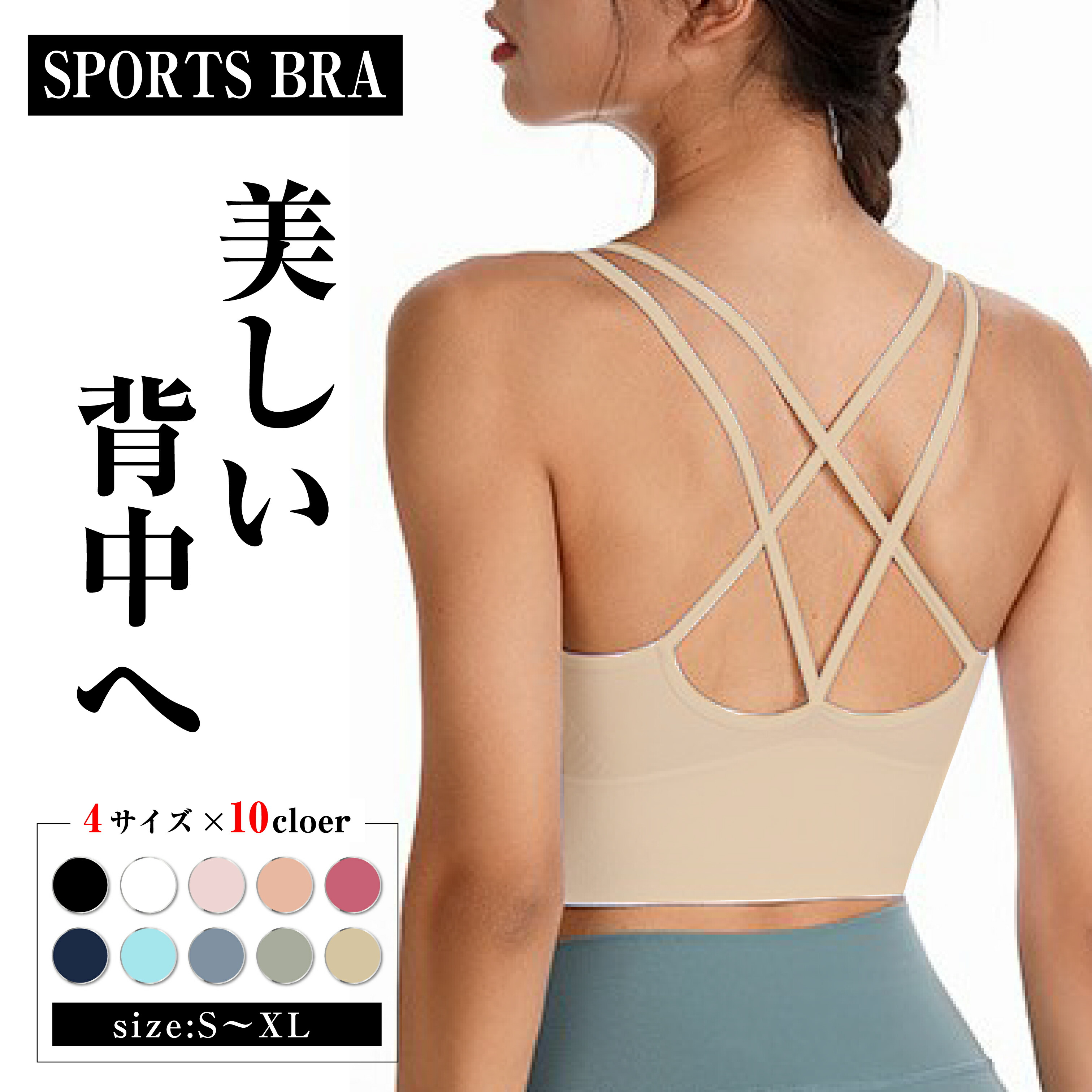 商品名:ヨガウェア トップス スポーツブラ 大きいサイズ 揺れない フィットネス レディース おしゃれ 盛れる クロス ノンワイヤー 速乾