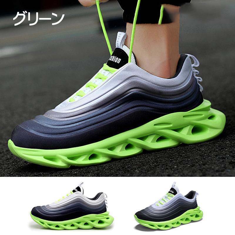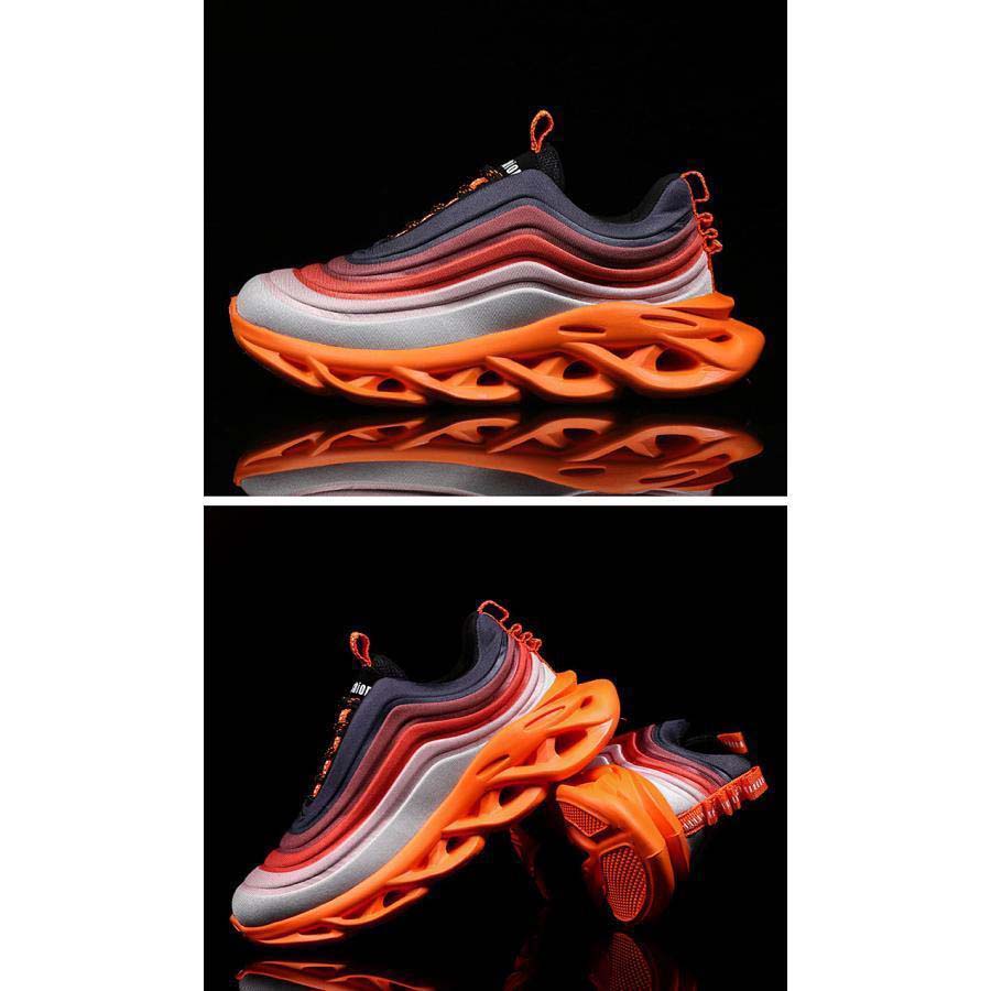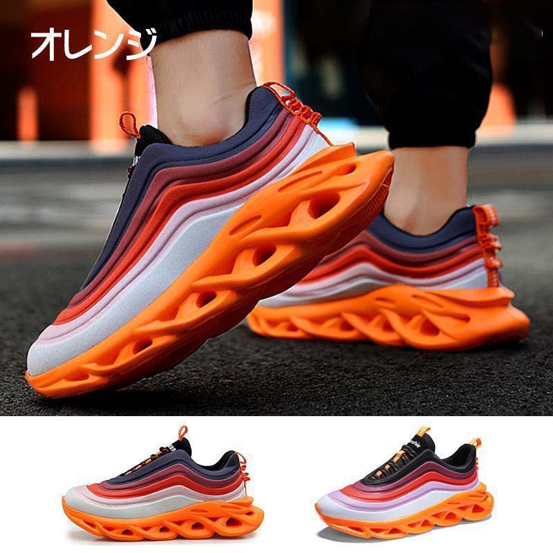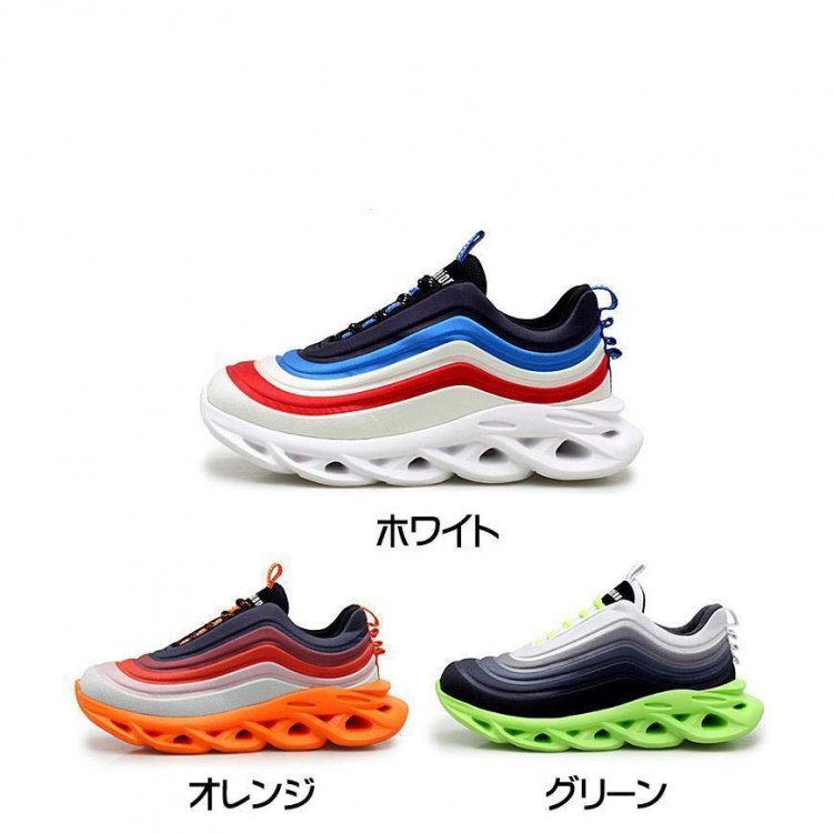 通気性:アッパーはフライニットの編み方で、メッシュより一層丈夫で、通気性も優れて、汗蒸れを防ぎ、コンフォートな感じが体験できます