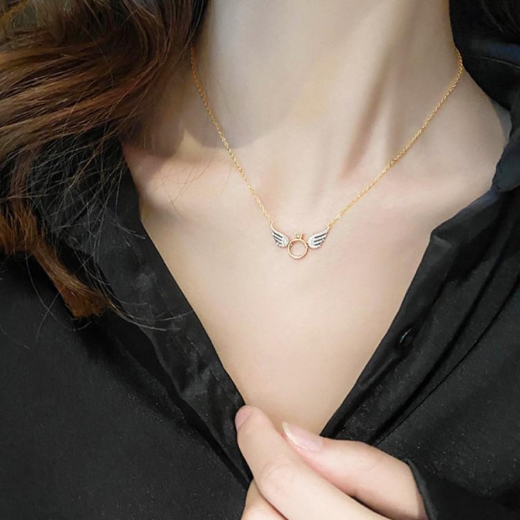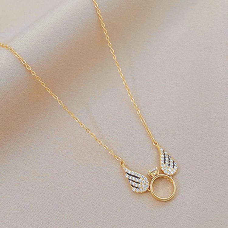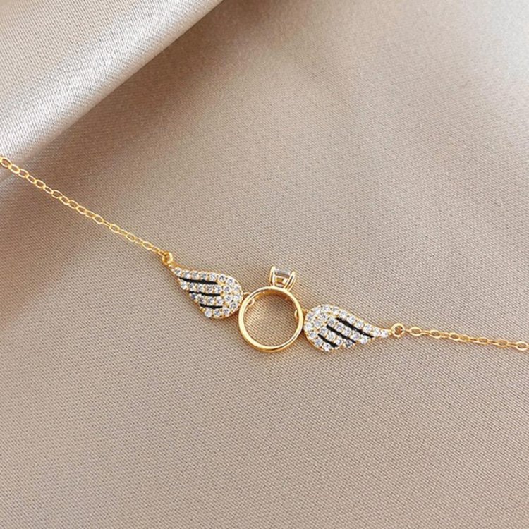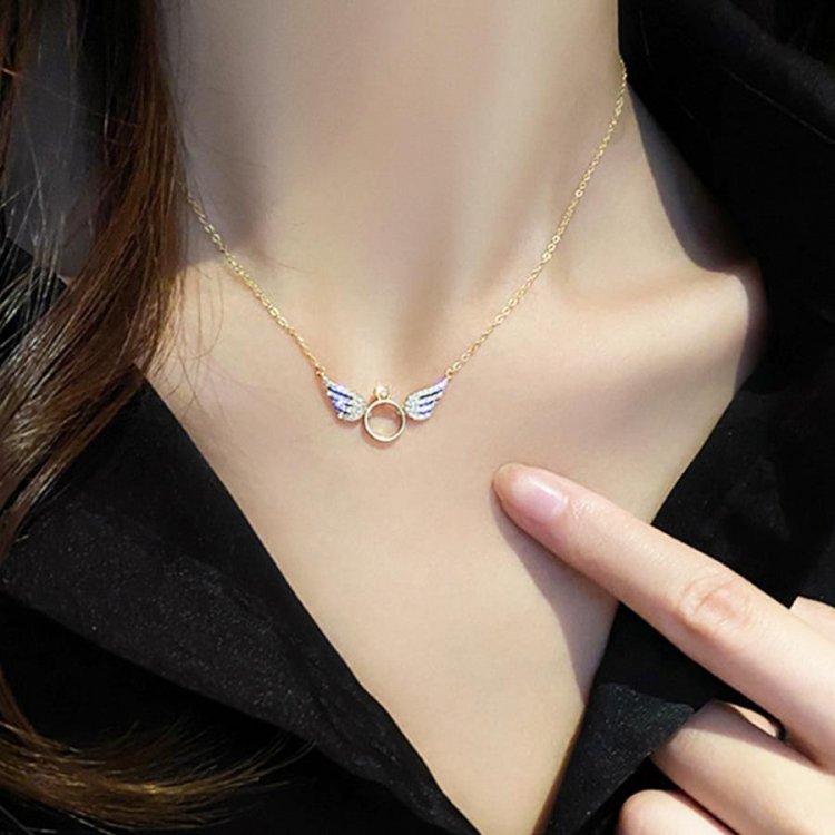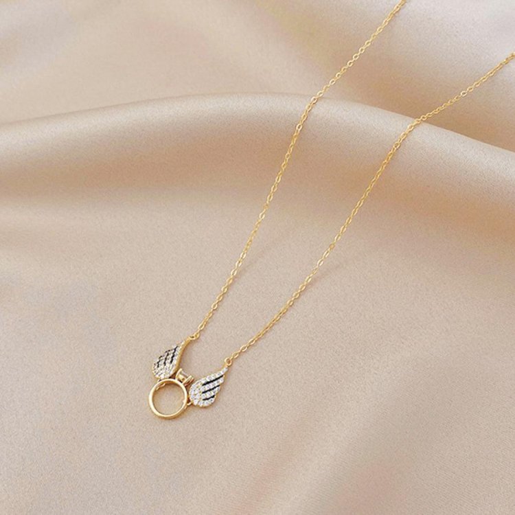 きらきら輝くラインストーを飾れた羽根モチーフネックレス