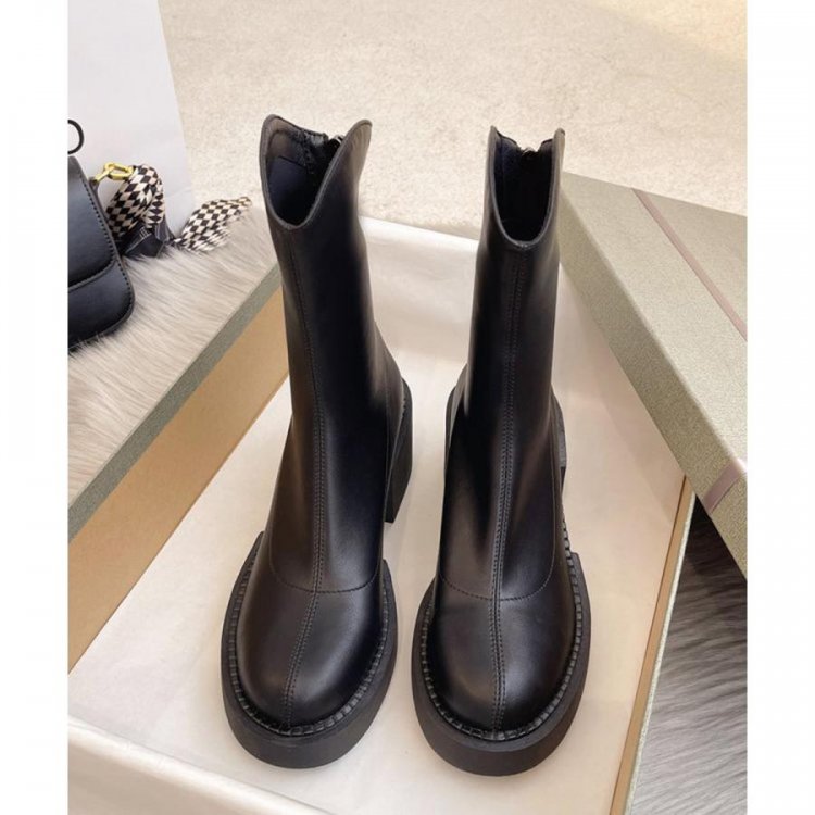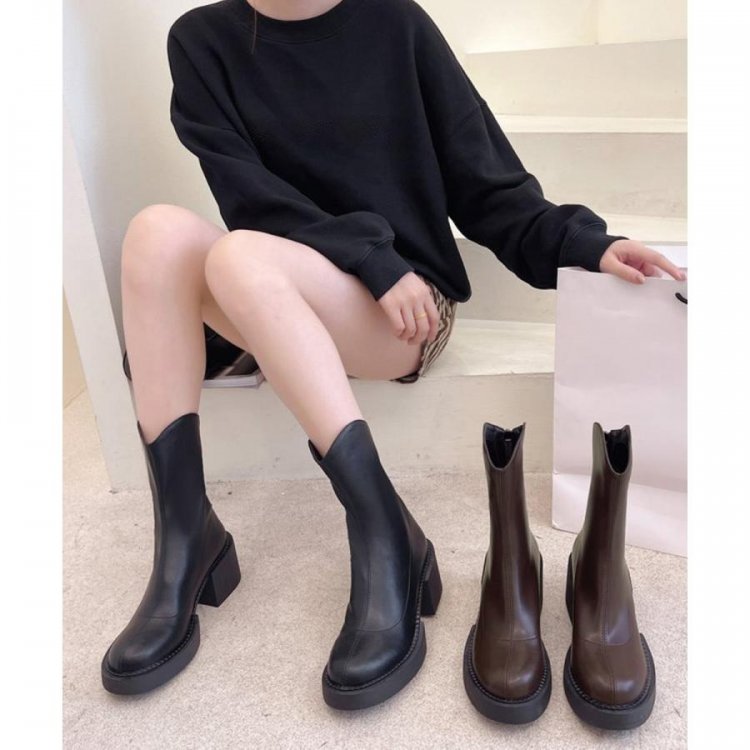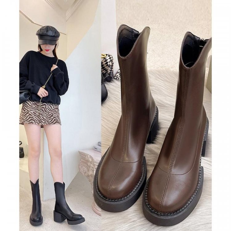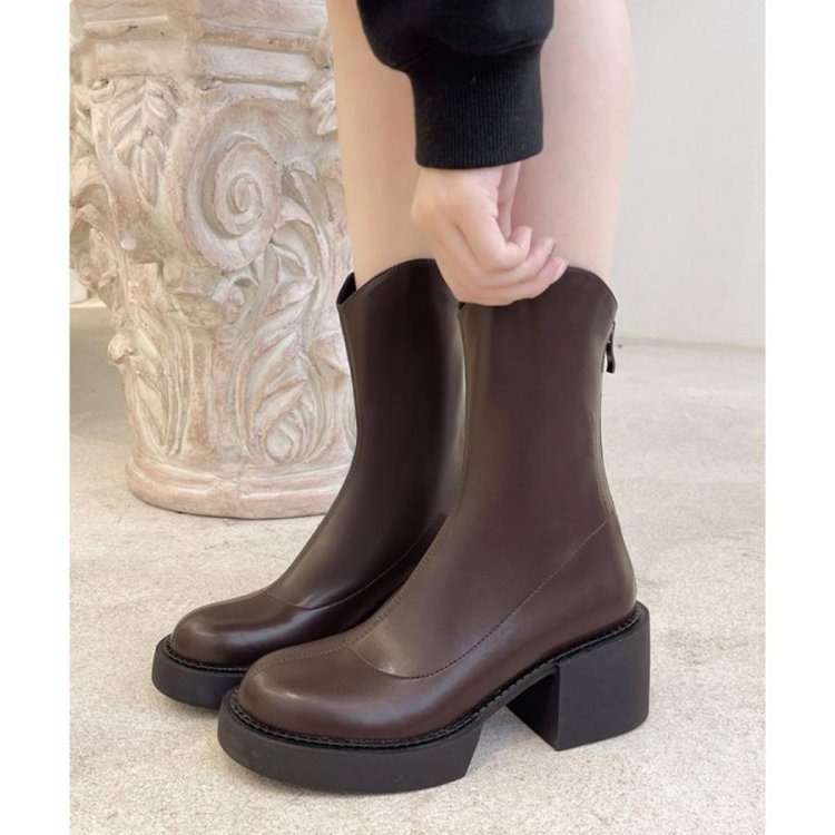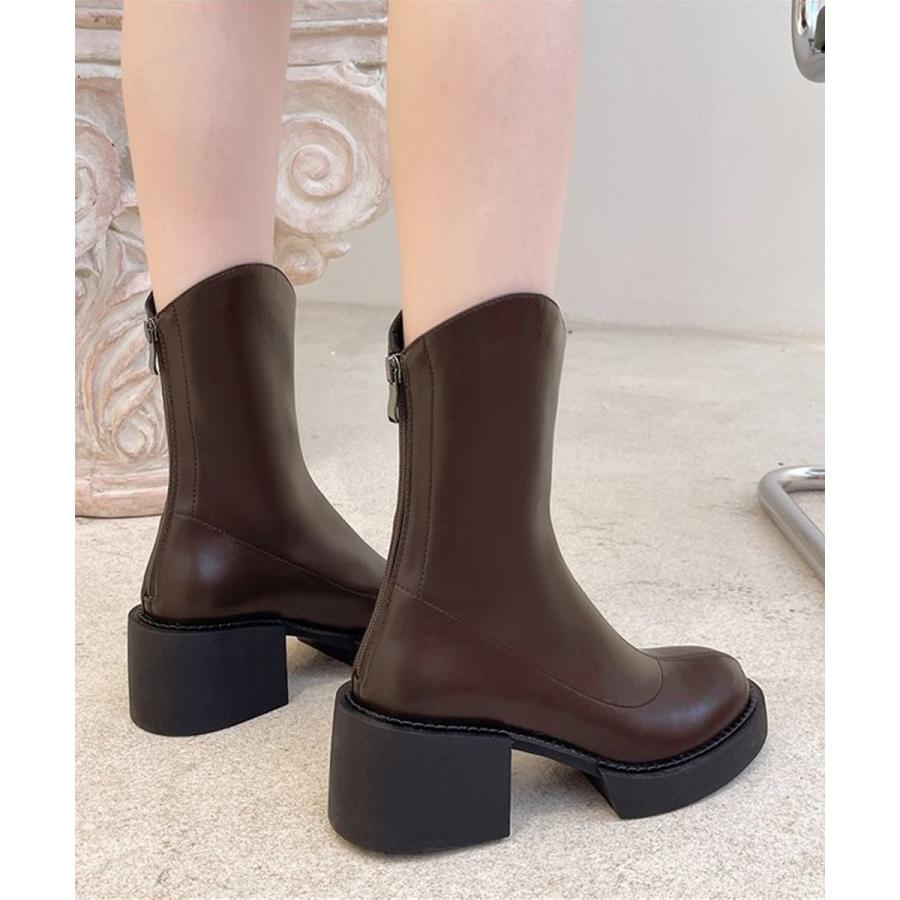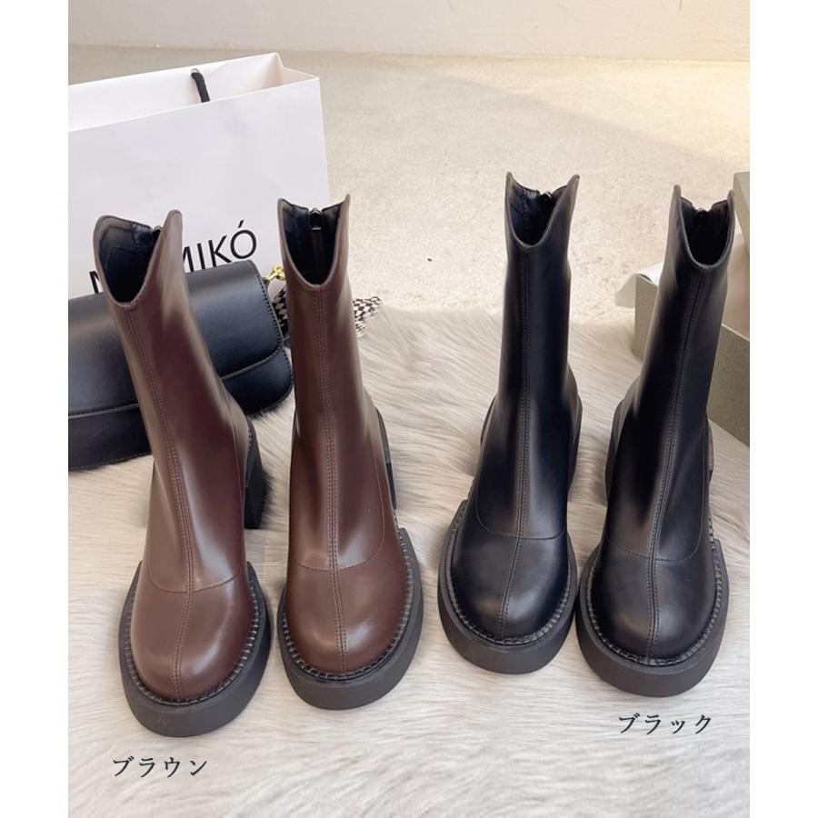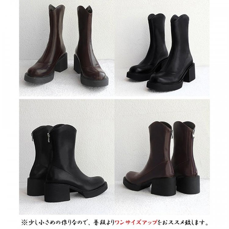 チャンキーヒール ミドルブーツ ラウンドトゥ カジュアル靴 秋冬 バックジップブーツ 履きやすい 疲れにくいくつ人気新作