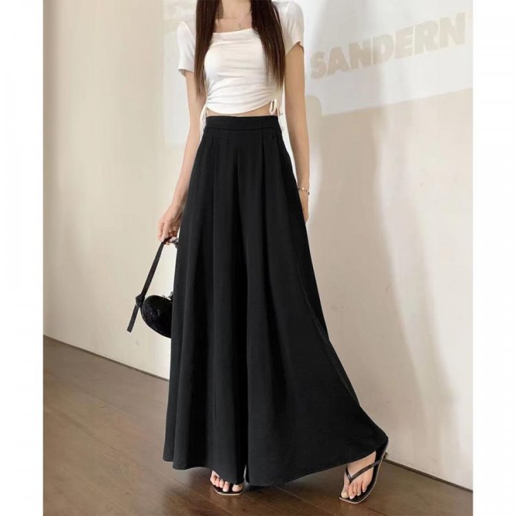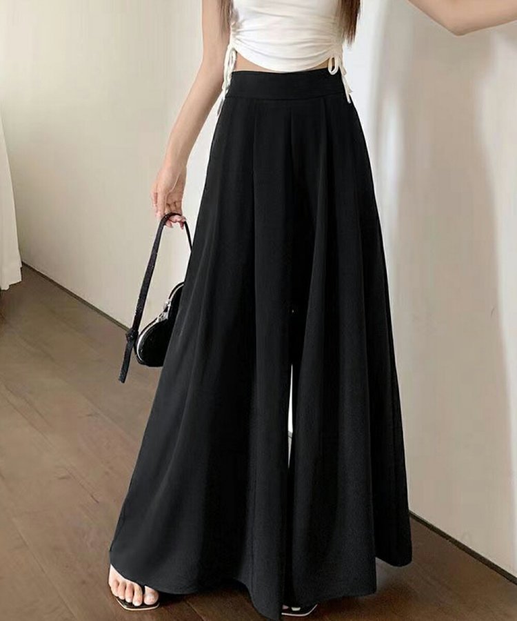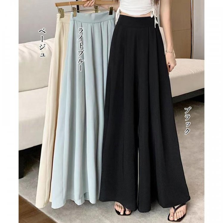 とろみパンツ スカンツ春夏 きれいめ ハイウエストフレアパンツ 無地 ロングパンツ さらとろ 体型カバーボトムス 韓国風