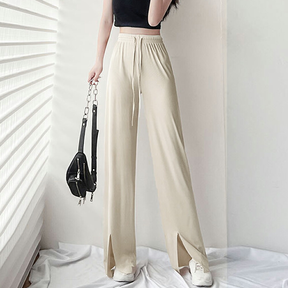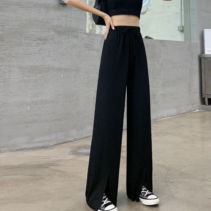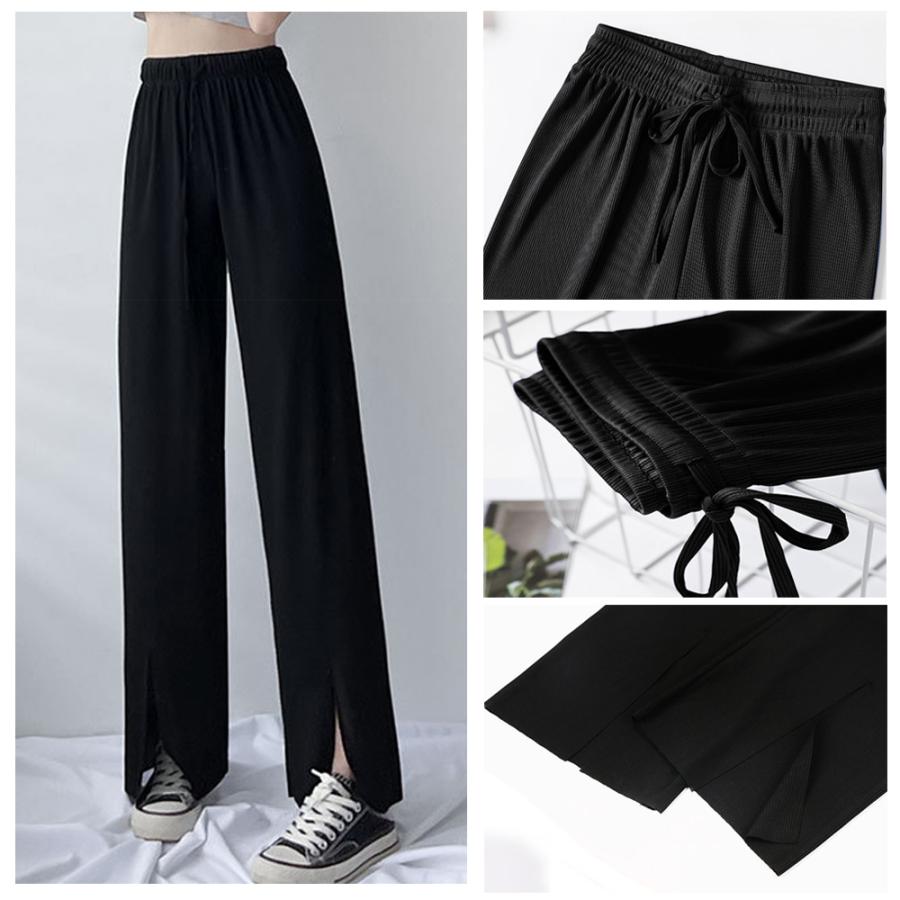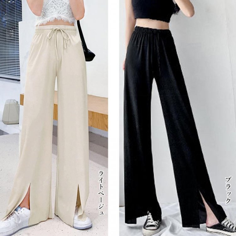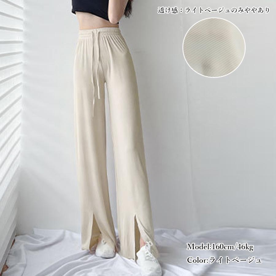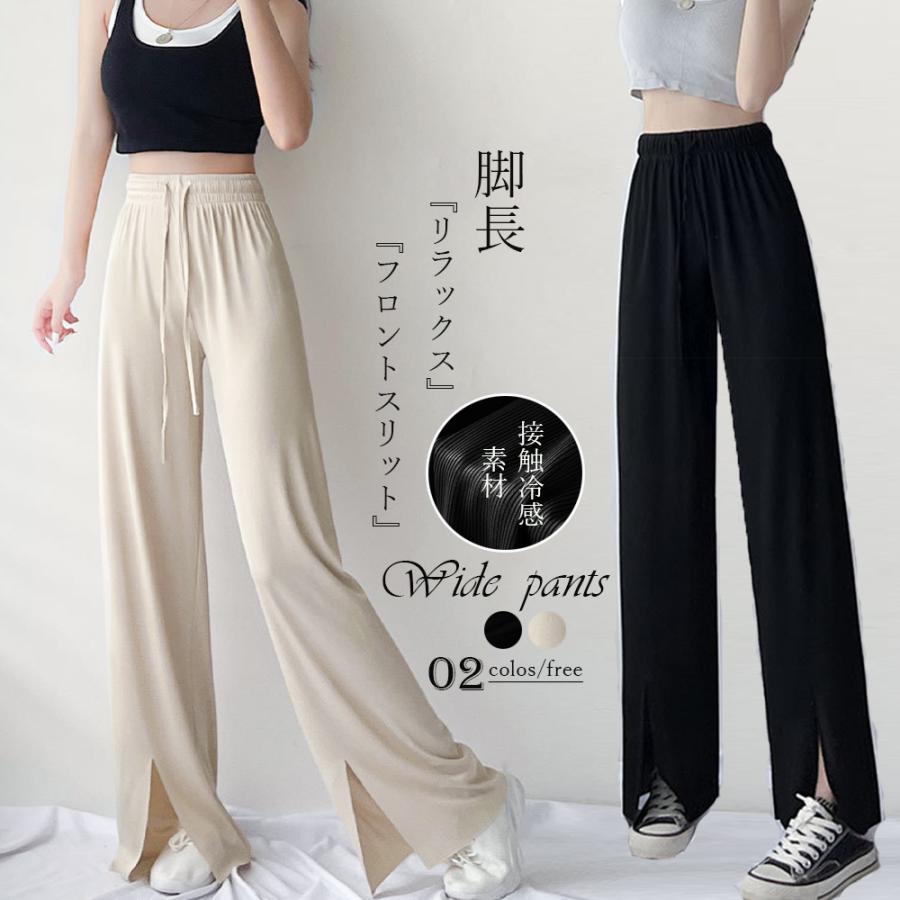 ロングパンツ レディース ハイウエスト リラックスパンツ ウエストゴム サマーパンツ 接触冷感 ストレートパンツ 春夏