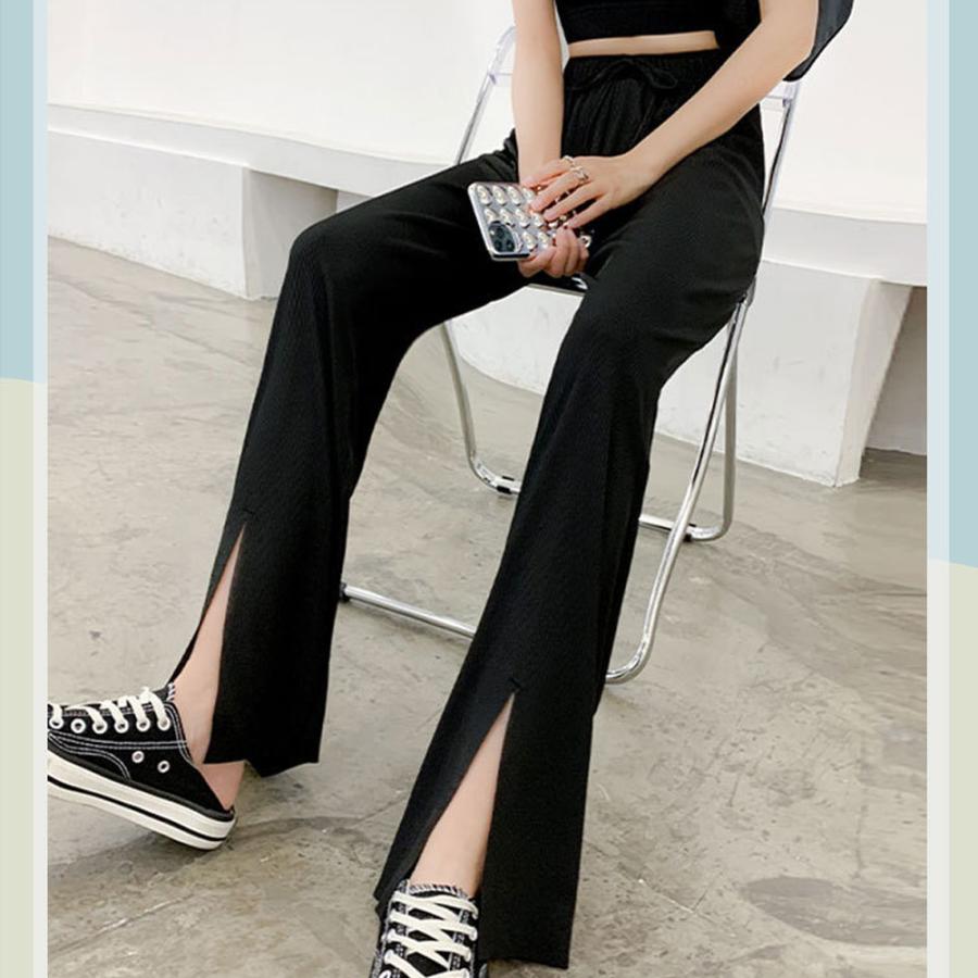 脚長スッキリ見えをかなえてくれるフロントスリットロングパンツ