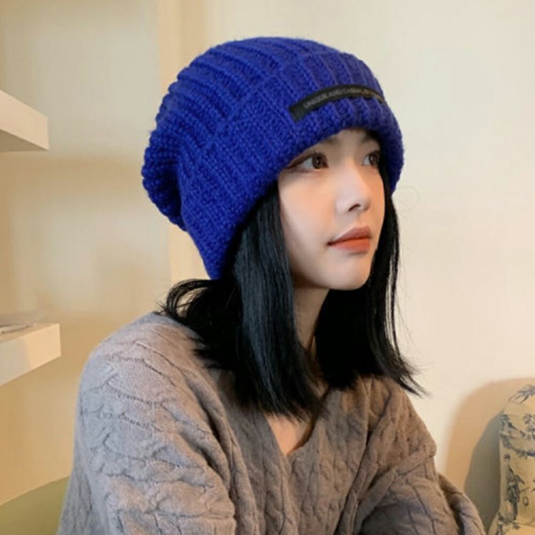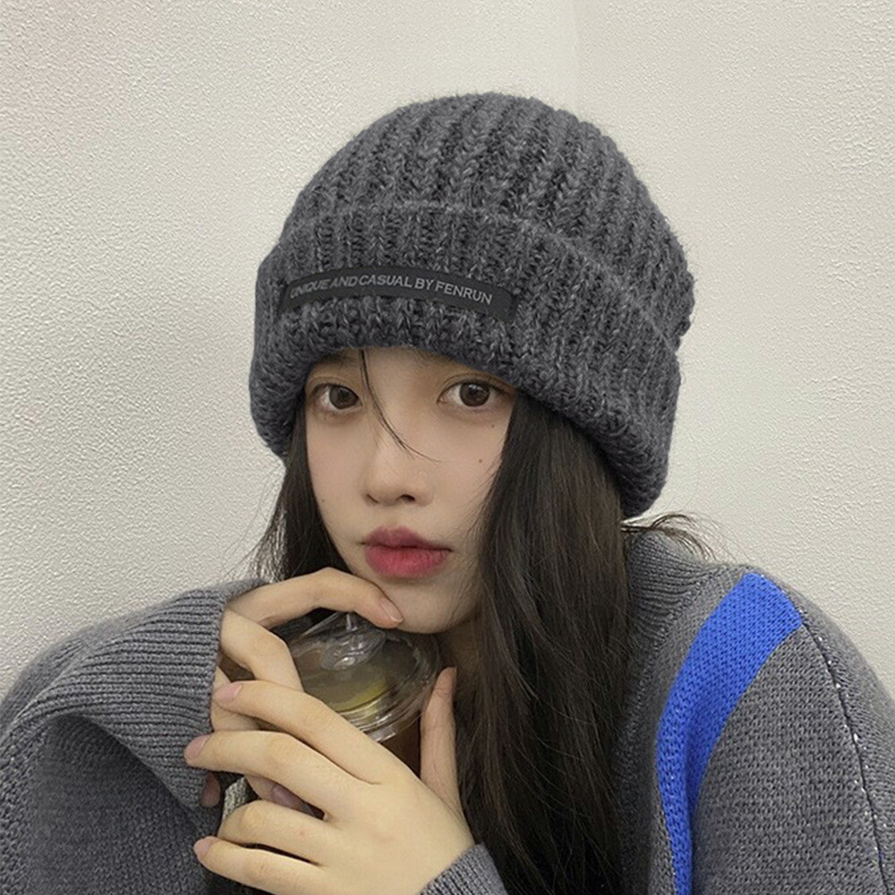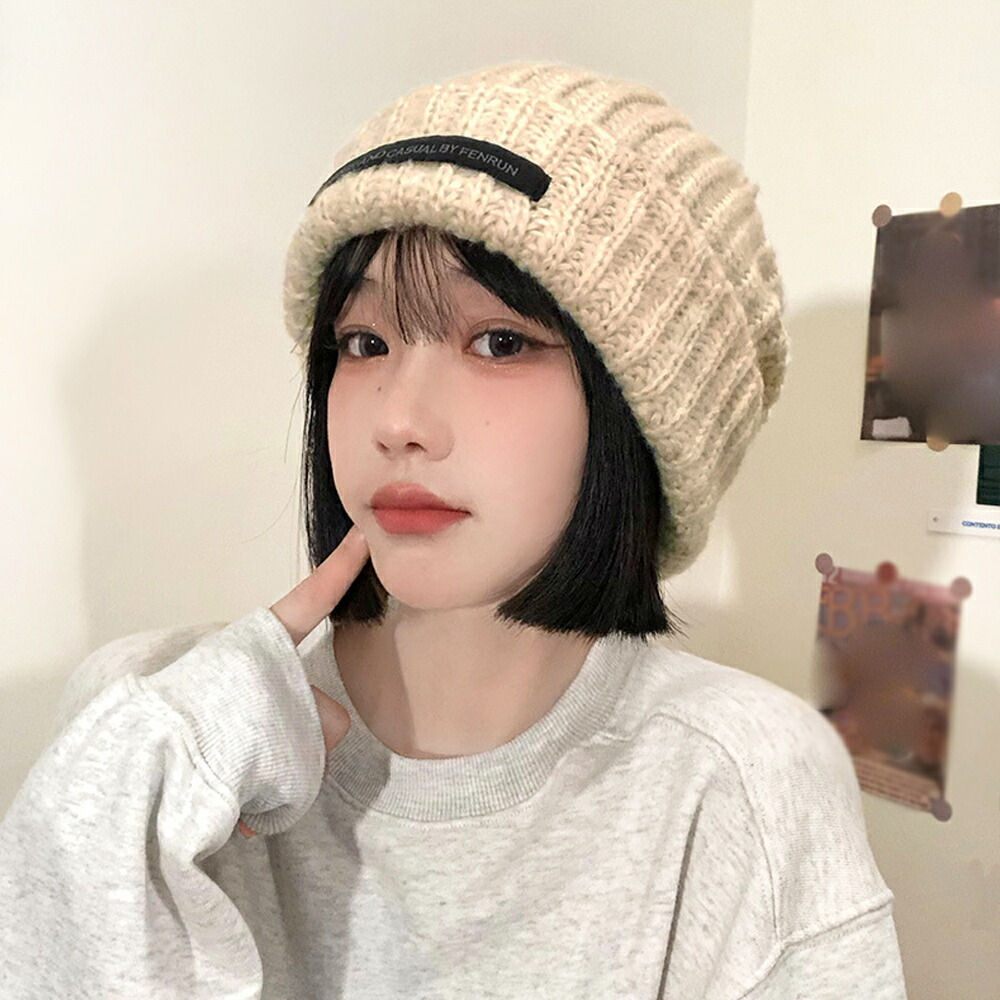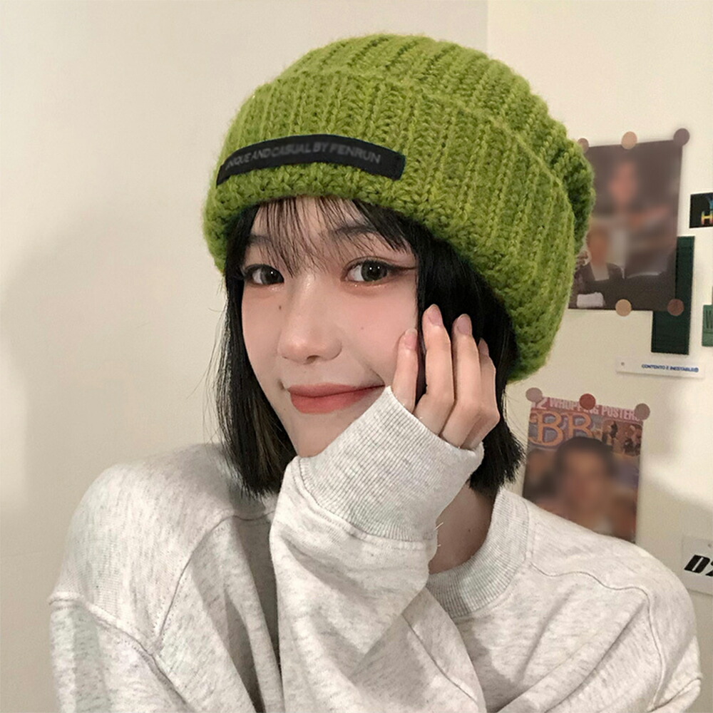 ニットキャップ リブ編み 英字ロゴ 折り畳み シルエット 小顔 カジュアル おしゃれ 可愛い ストリート 人気 お出掛け