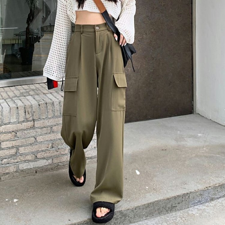 ヴィンテージ感溢れるデザインが魅力のハイウエストカーゴパンツ