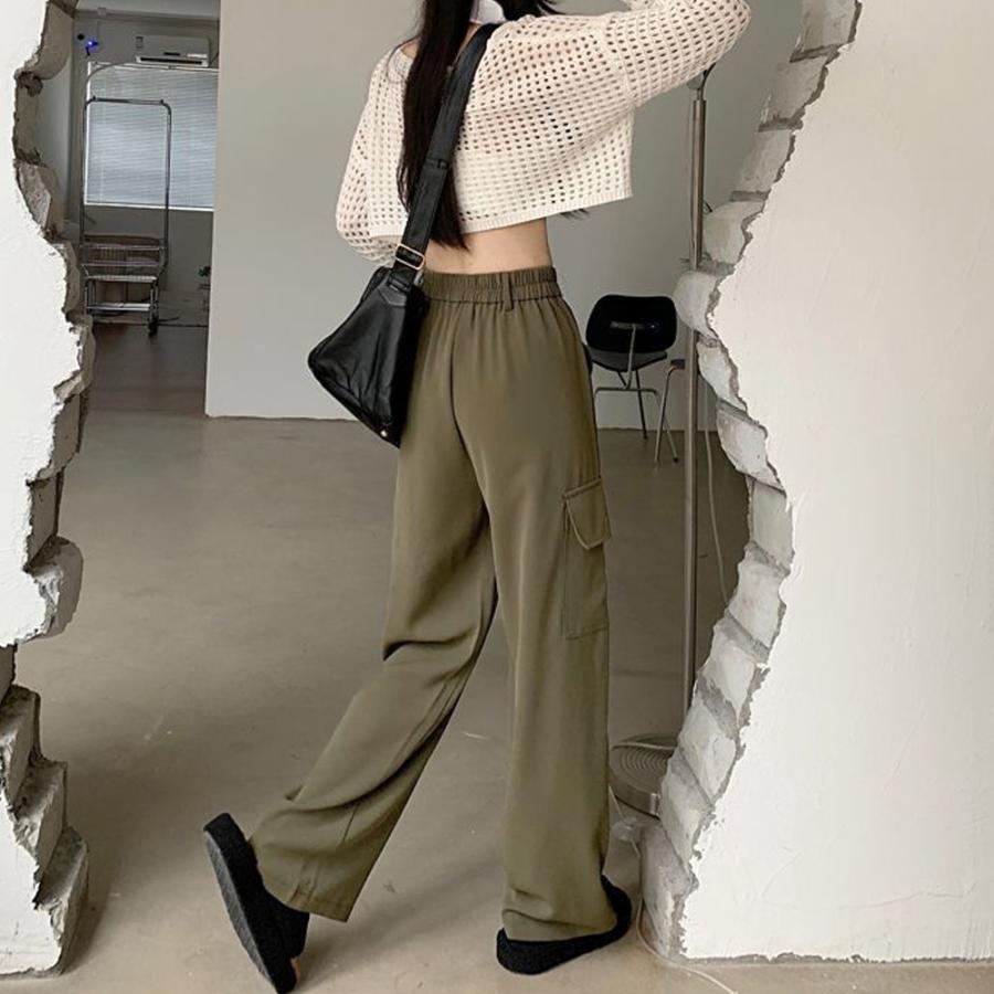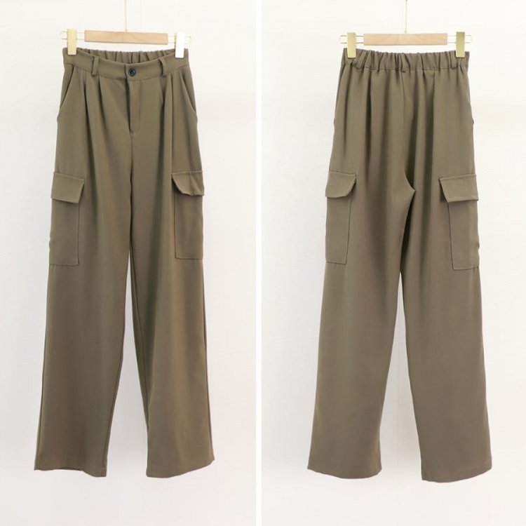 おしゃれ レトロ ドレープパンツ 女性 セミワイドパンツ ミリタリーパンツ ウエストゴム ストレートパンツ 着やせ春夏秋