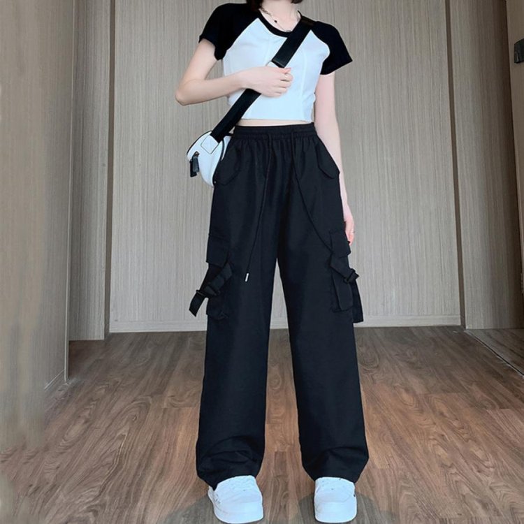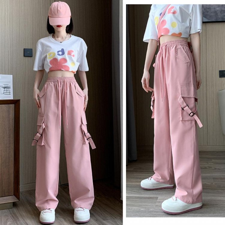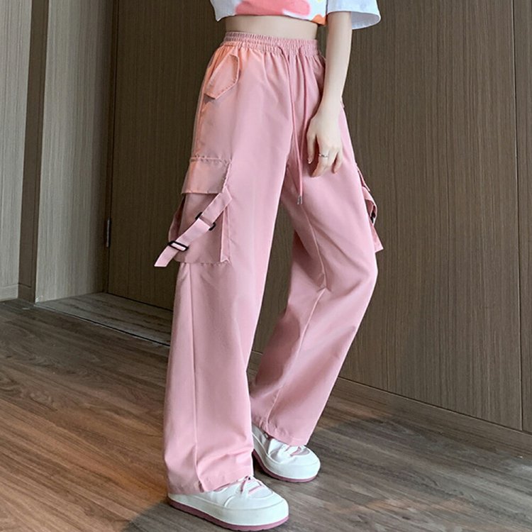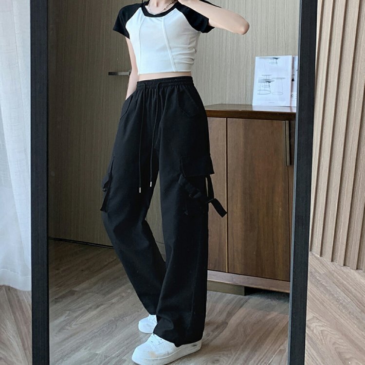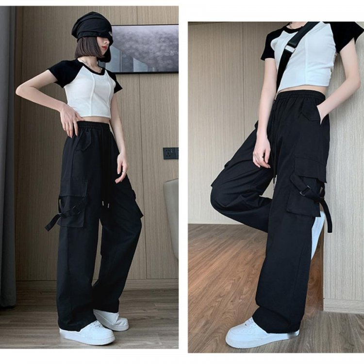 春秋夏 ウエストゴム かっこいい ゆったり ボトムス 低身長向け 原宿風 ストレートパンツ カジュアル ダンス衣装
