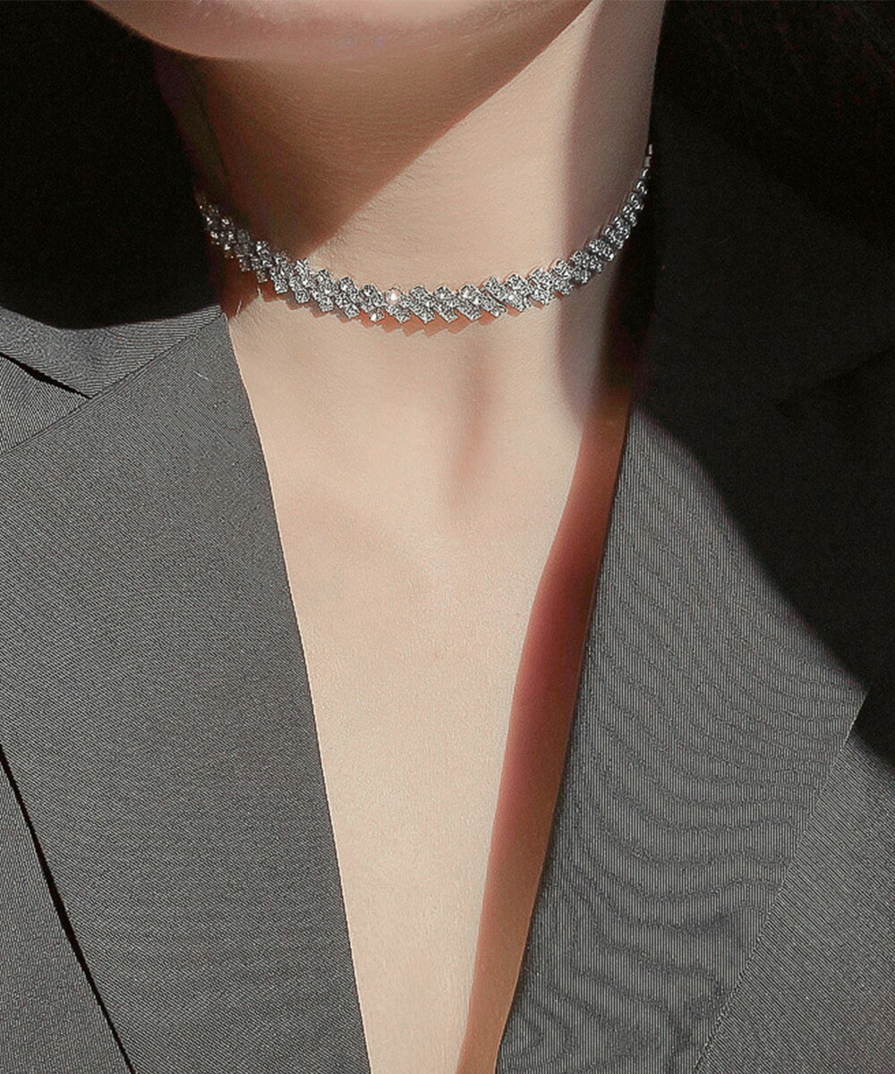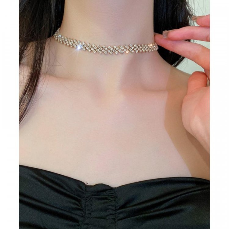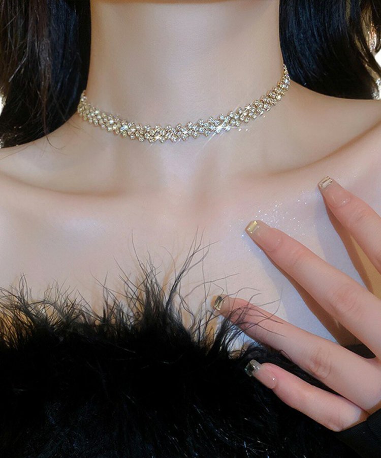 トレンドのラインストーンネックレスが登場