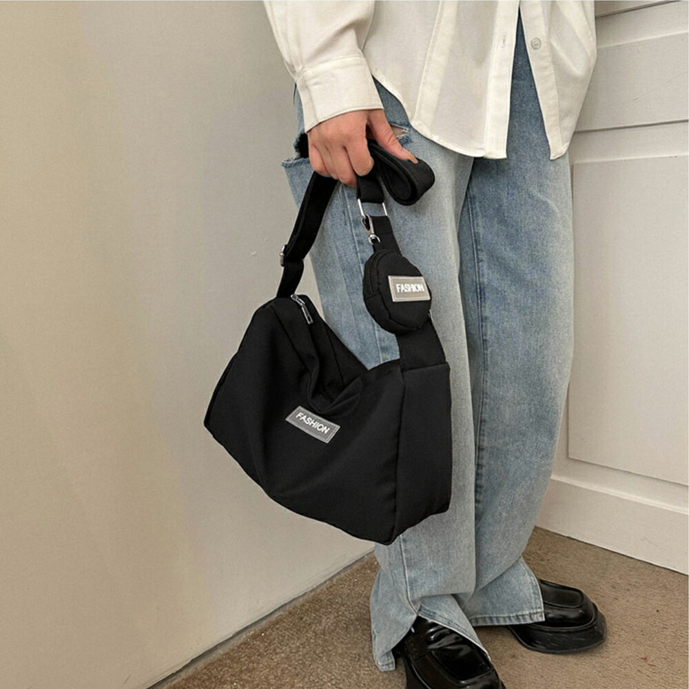 丈夫なナイロン素材で仕上げた軽量で実用的な大容量ショルダーバッグです