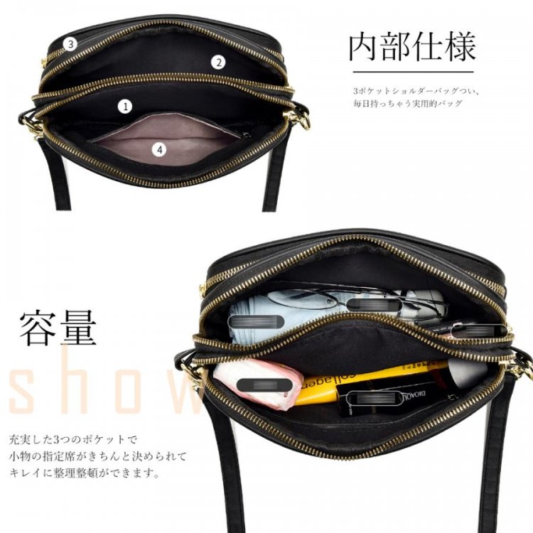 コンパクトなのにしっかり入る収納力!3ポケットショルダーバッグつい、毎日持っちゃう実用的バッグ。見た目以上にたくさん入るので通勤?通学?デイリー使いに大活躍です