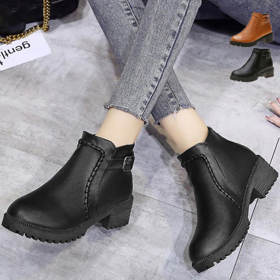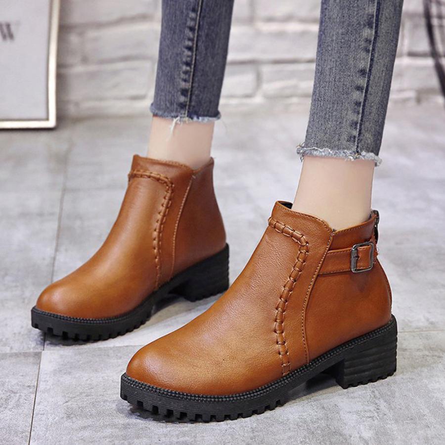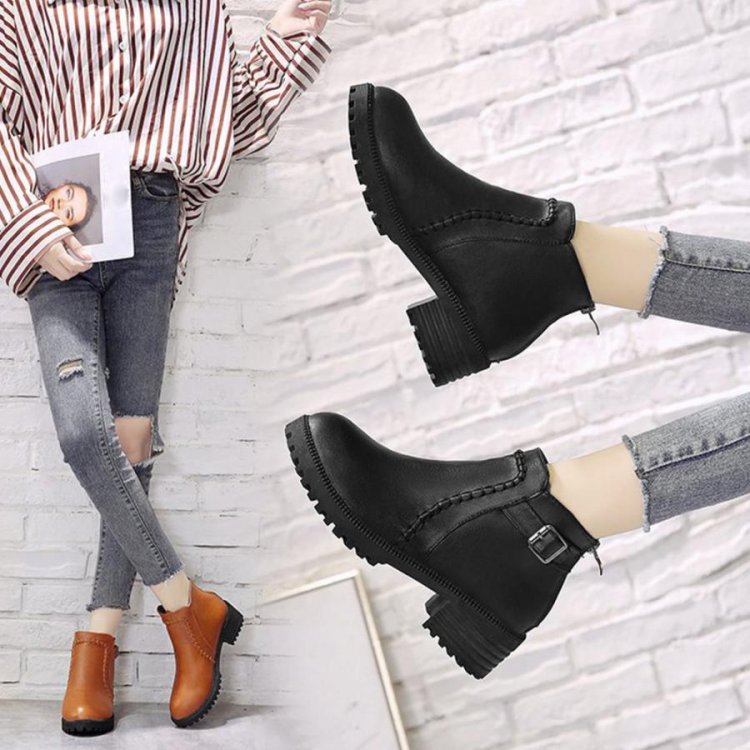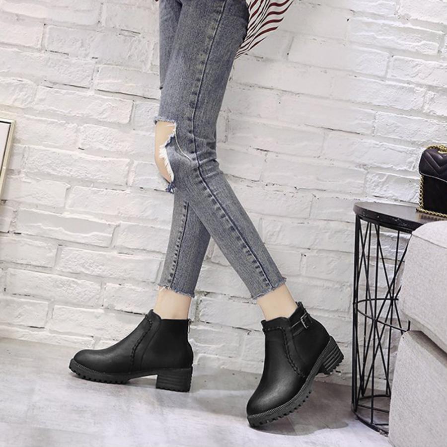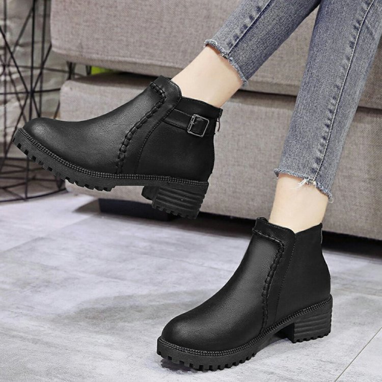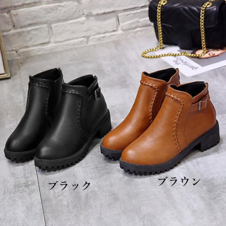 レトロ PUレザー バックルブーツ 履きやすい シューズ カジュアル バックジップブーツ 歩きやすい 通勤秋冬靴おしゃれ
