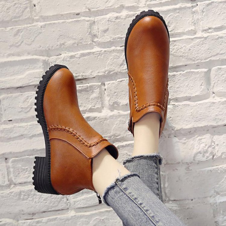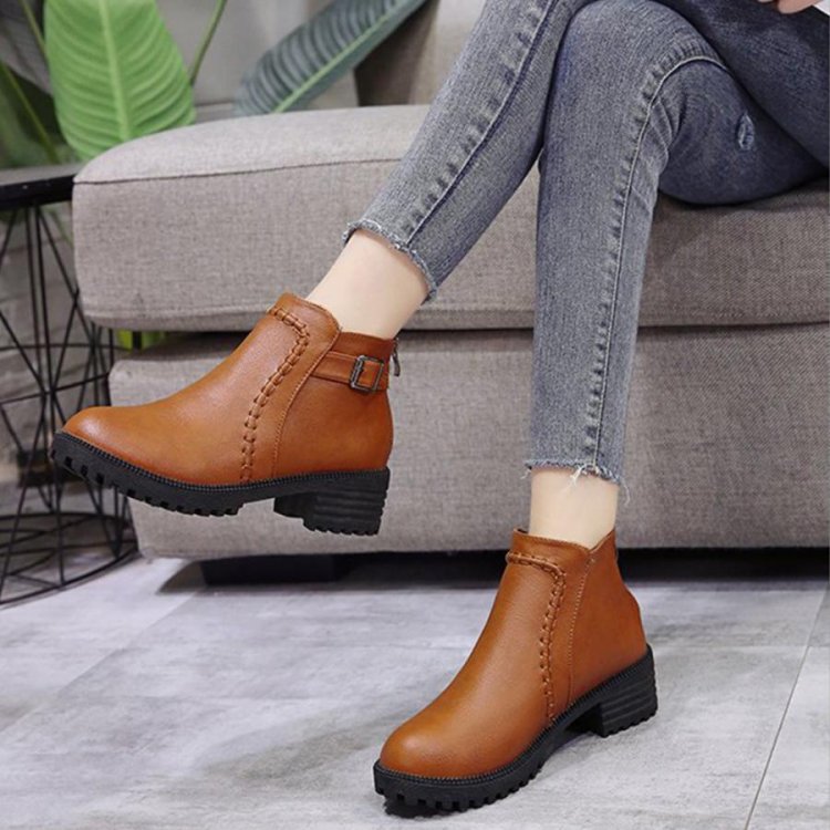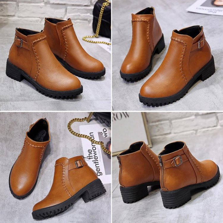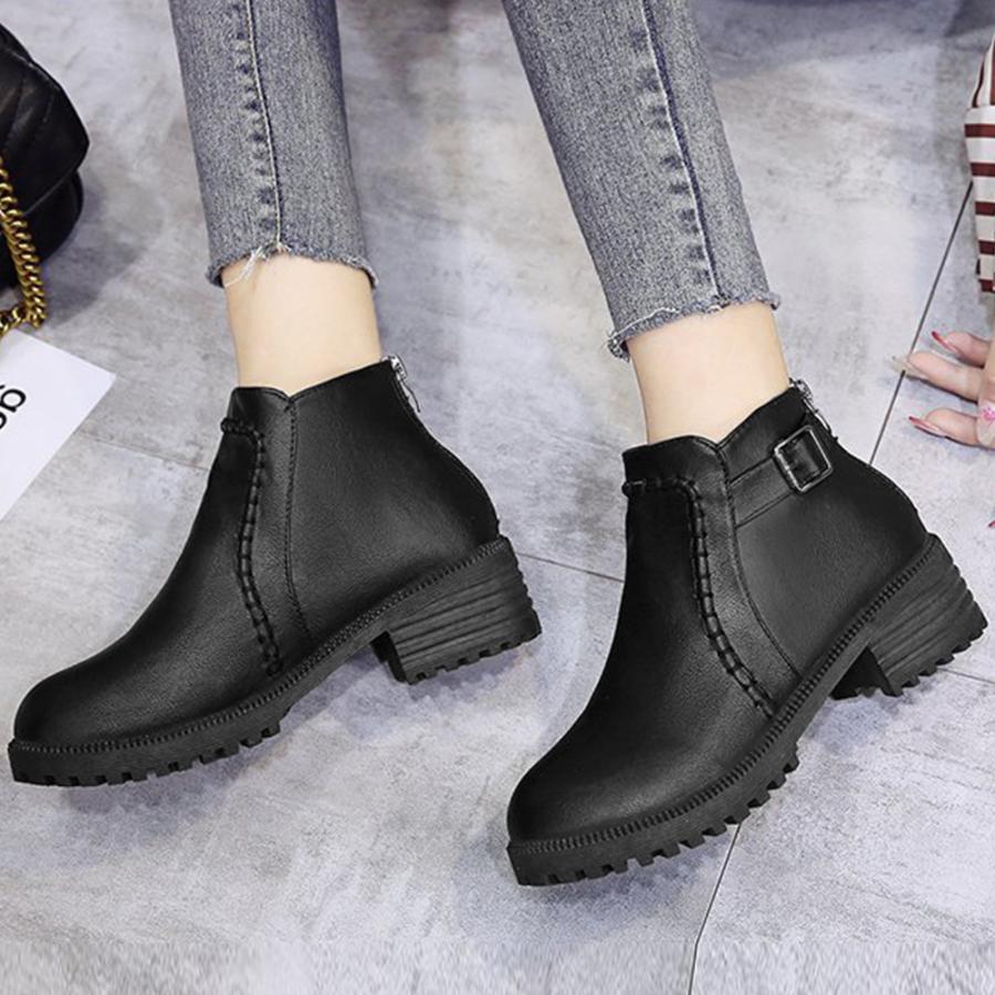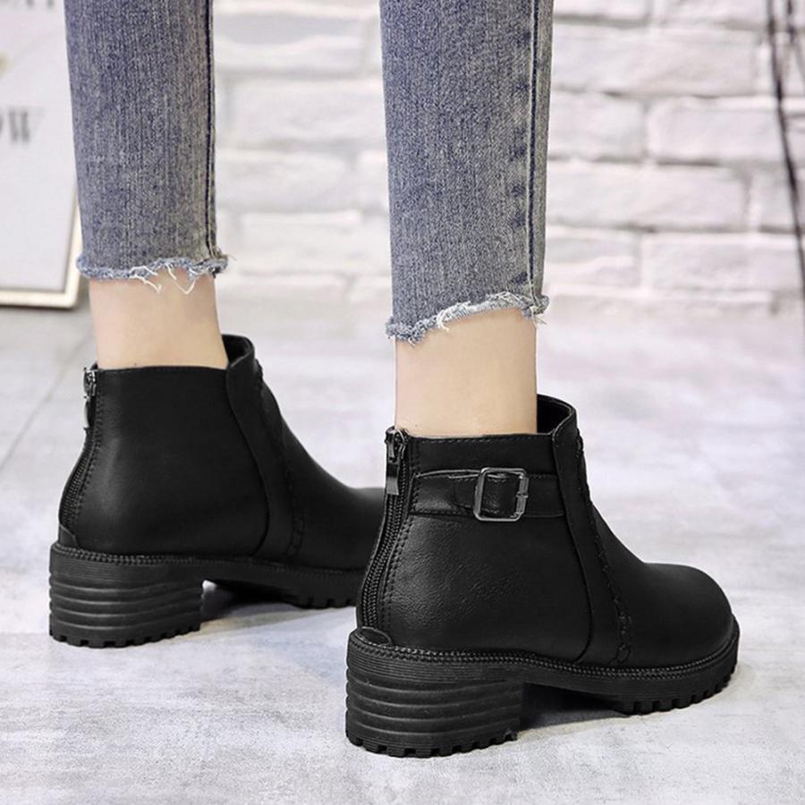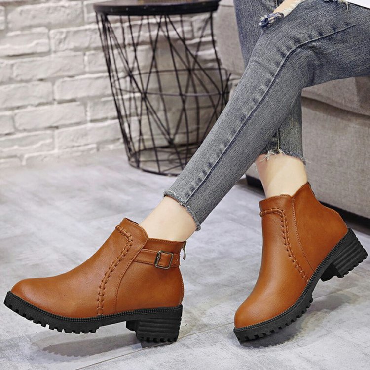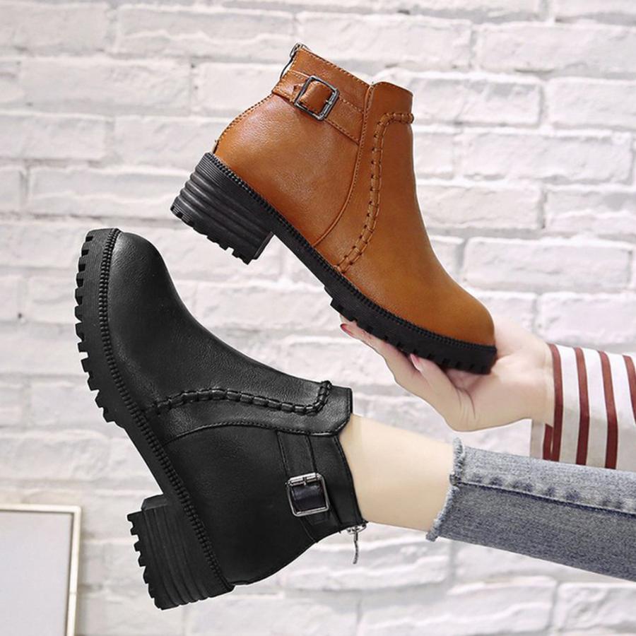 レトロ PUレザー バックルブーツ 履きやすい シューズ カジュアル バックジップブーツ 歩きやすい 通勤秋冬靴おしゃれ
