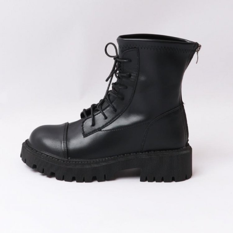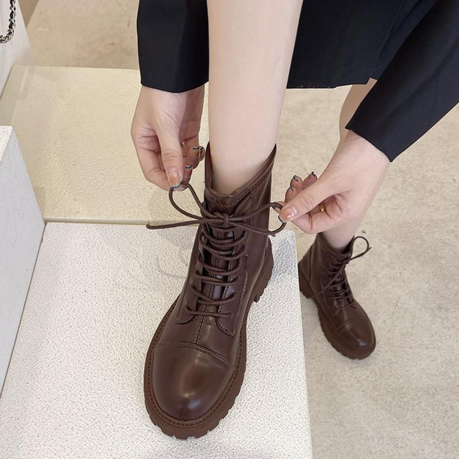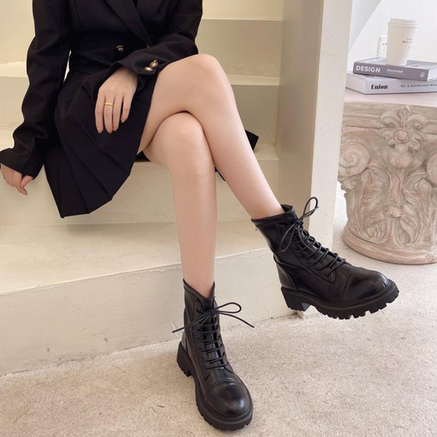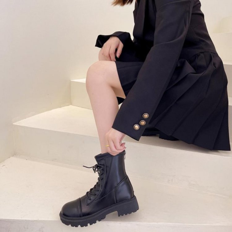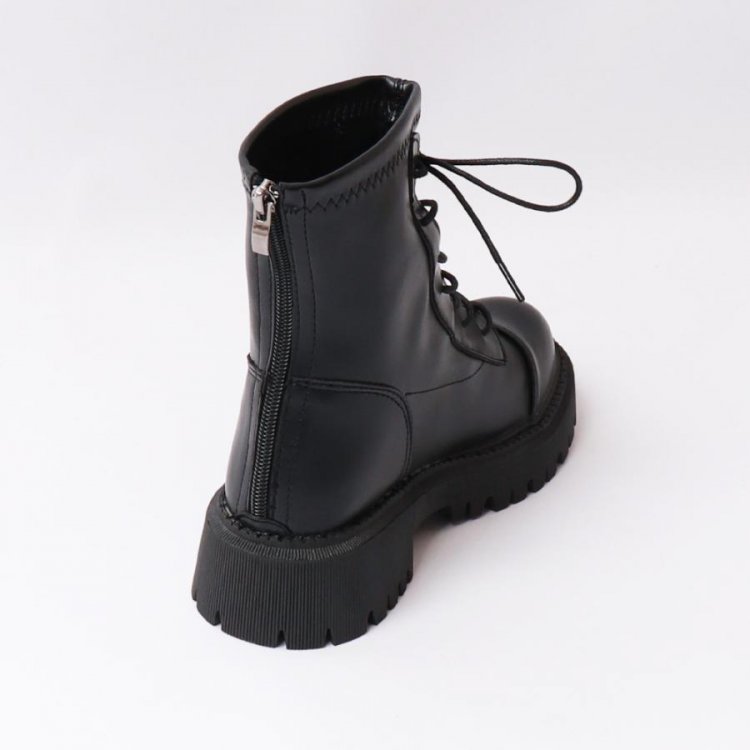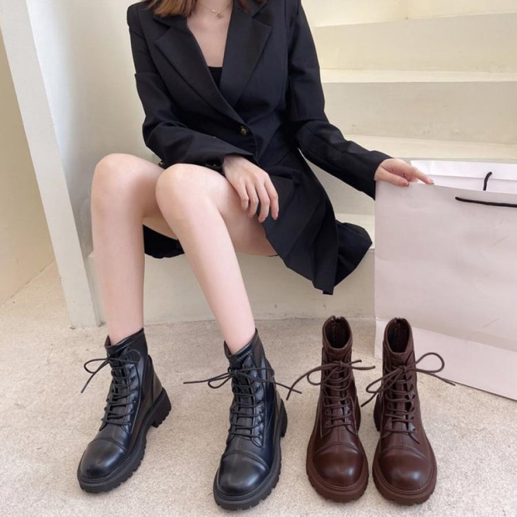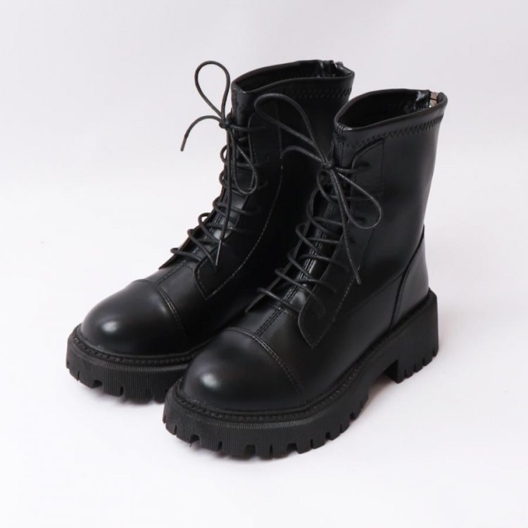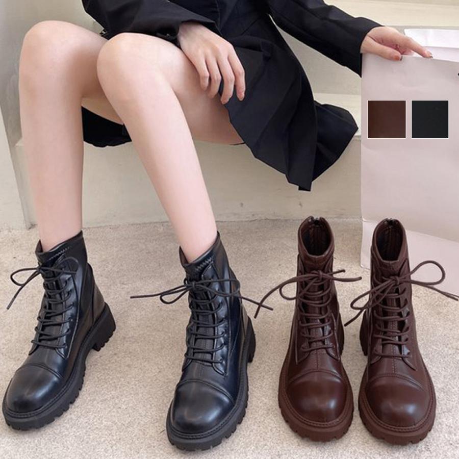 厚底ブーツ 韓国 バックファスナー 靴 ワークブーツ 秋冬 ローヒール 美脚 歩きやすい 通勤 通学 履きやすいくつ